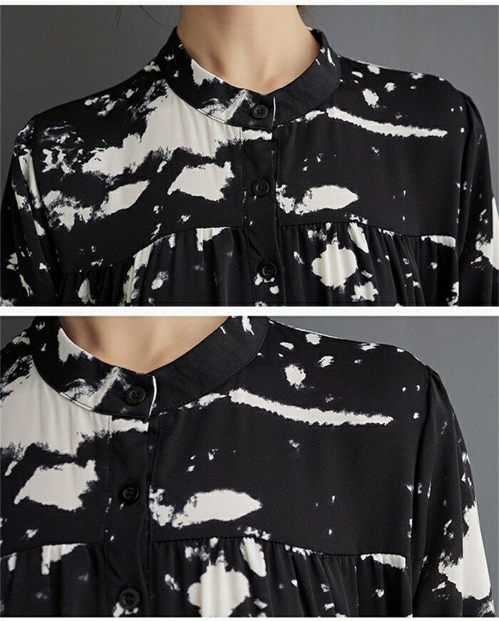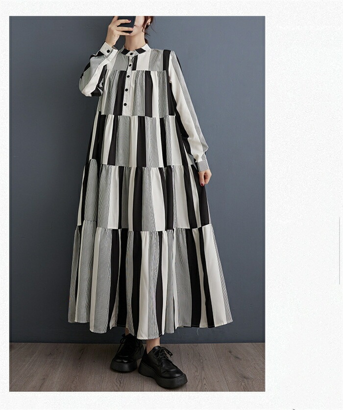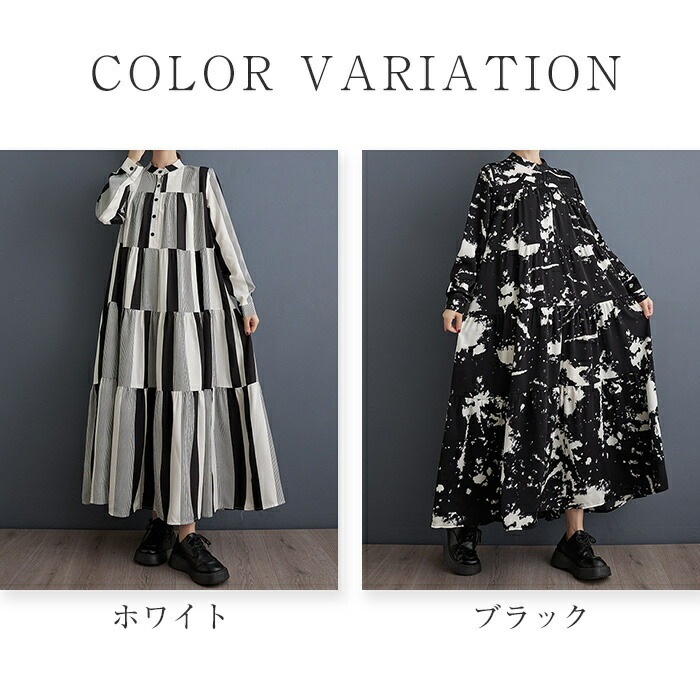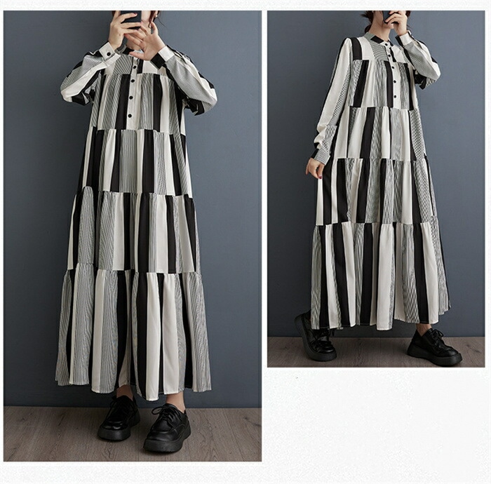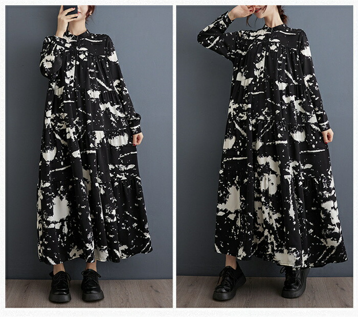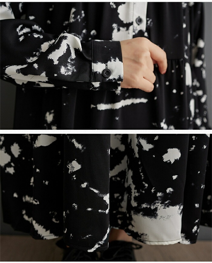 モード ワンピース レディース 長袖 春秋 シャツワンピース 柄 ロング丈 マキシ 大人 ゆったり おしゃれ きれいめ ロングワンピース Aライン 体型カバー 楽チン カジュアル 着回し ルームウェア
