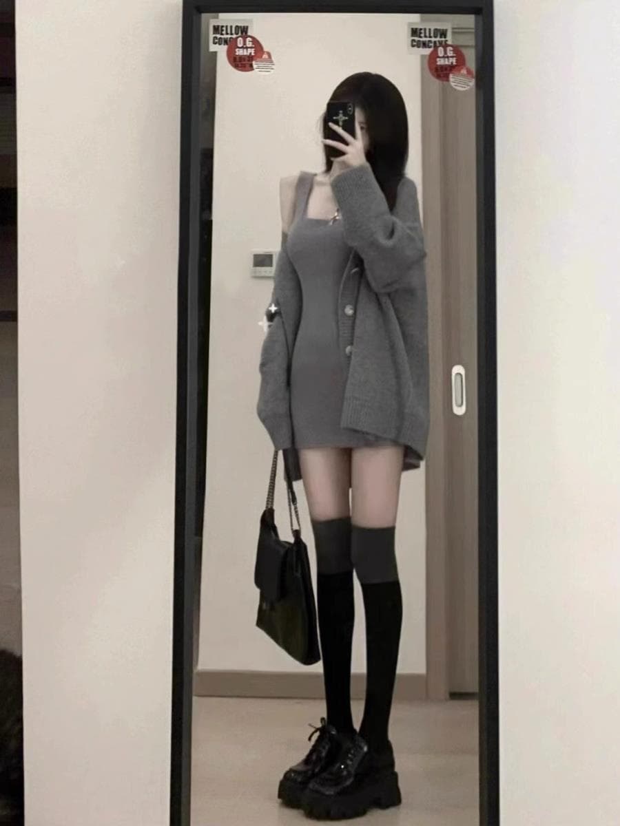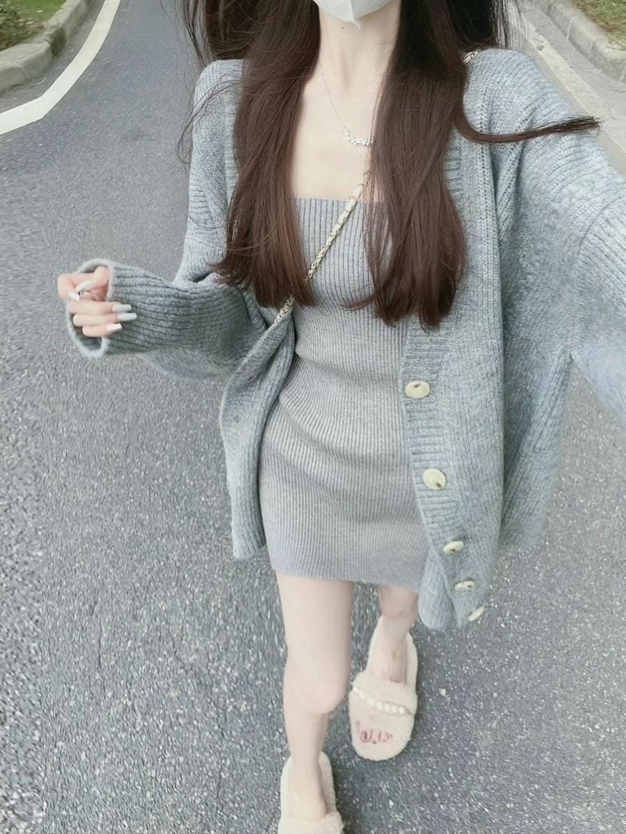 セーターニット2点セット カーディガン +キャミソールミニスカート レディース セクシー ニットワンピ セットアップ