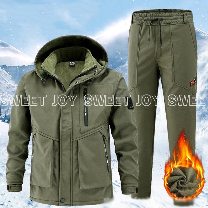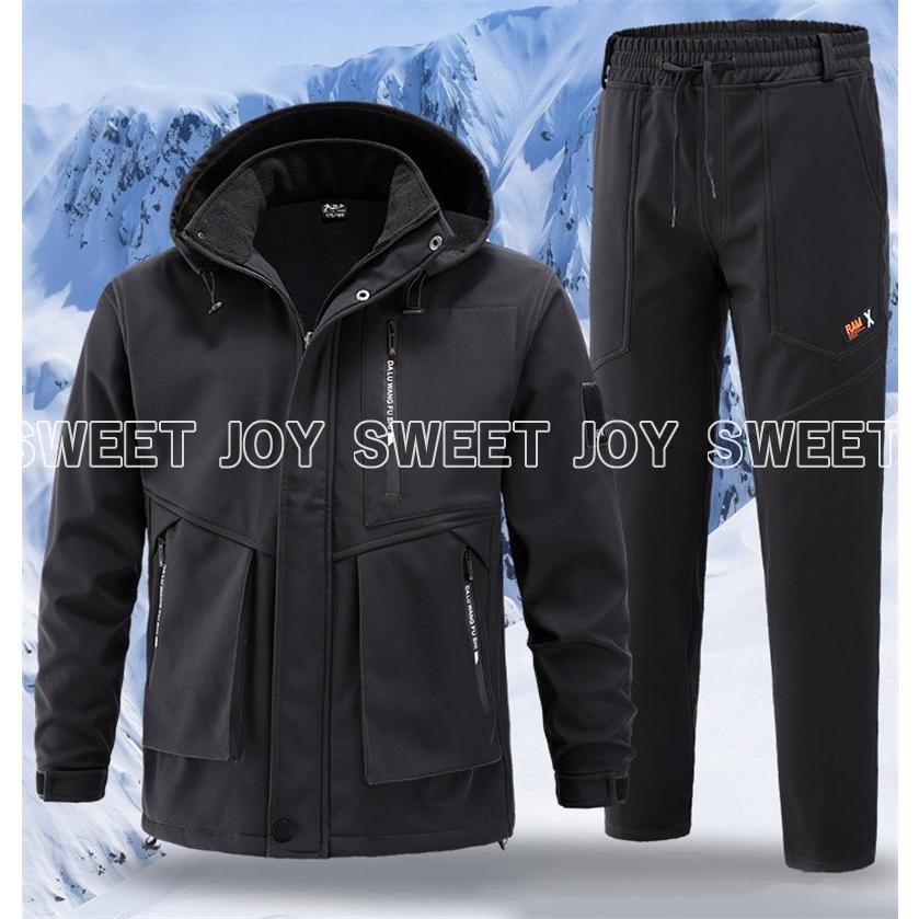 メンズ マウンテンジャケット ワークパンツ 上下セット 防寒 防水 撥水 防風 厚手 裏起毛 裏ボア マウンテンパーカー 長ズボン 2点セット