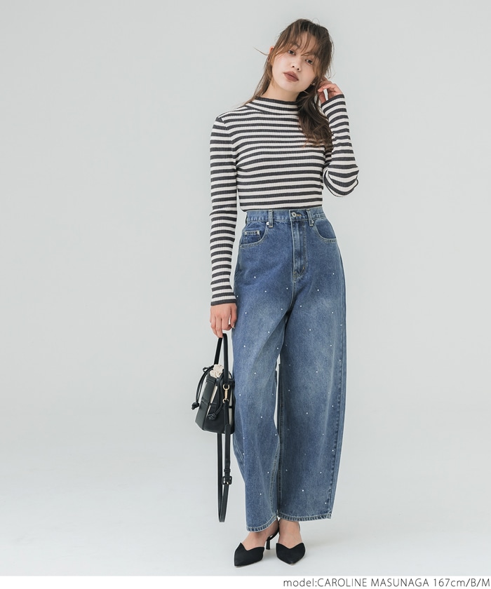 デニムパンツ ビジュー付き