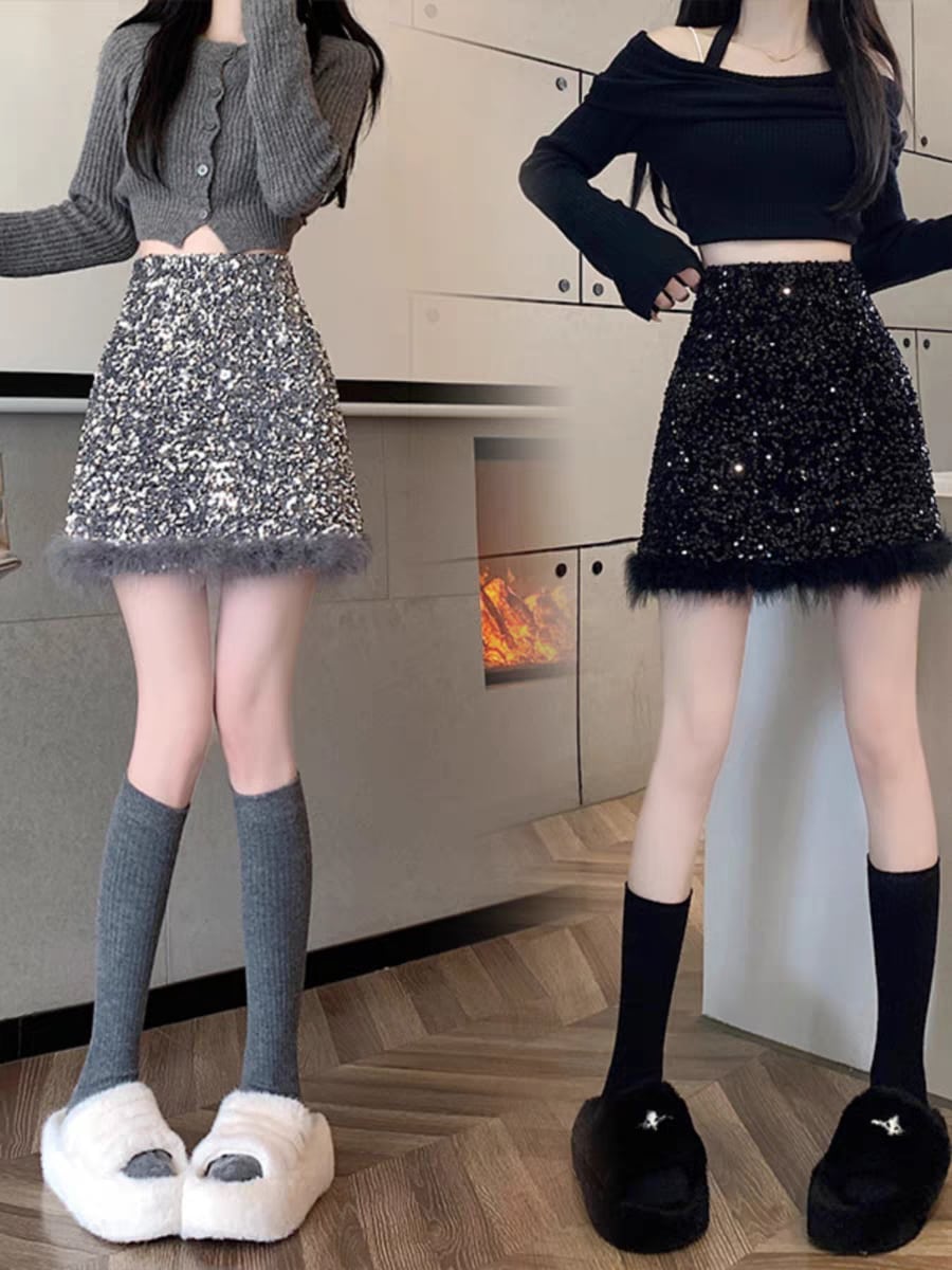 FREEL2色韓国スパンコールスカート ミニスカート