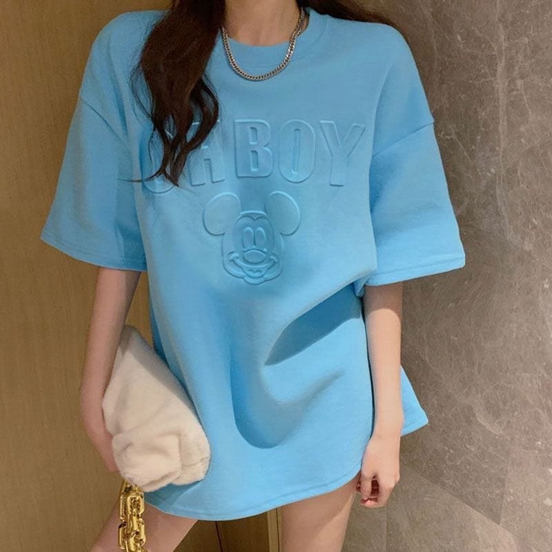 ディズニー 3D ミッキー マカロン レディースファッション M-2XLキャラクター おおきいサイズ Tシャツ レディース ペアルック Tシャツ レディース ルームウェア 半袖 Tシャツ