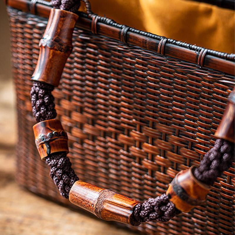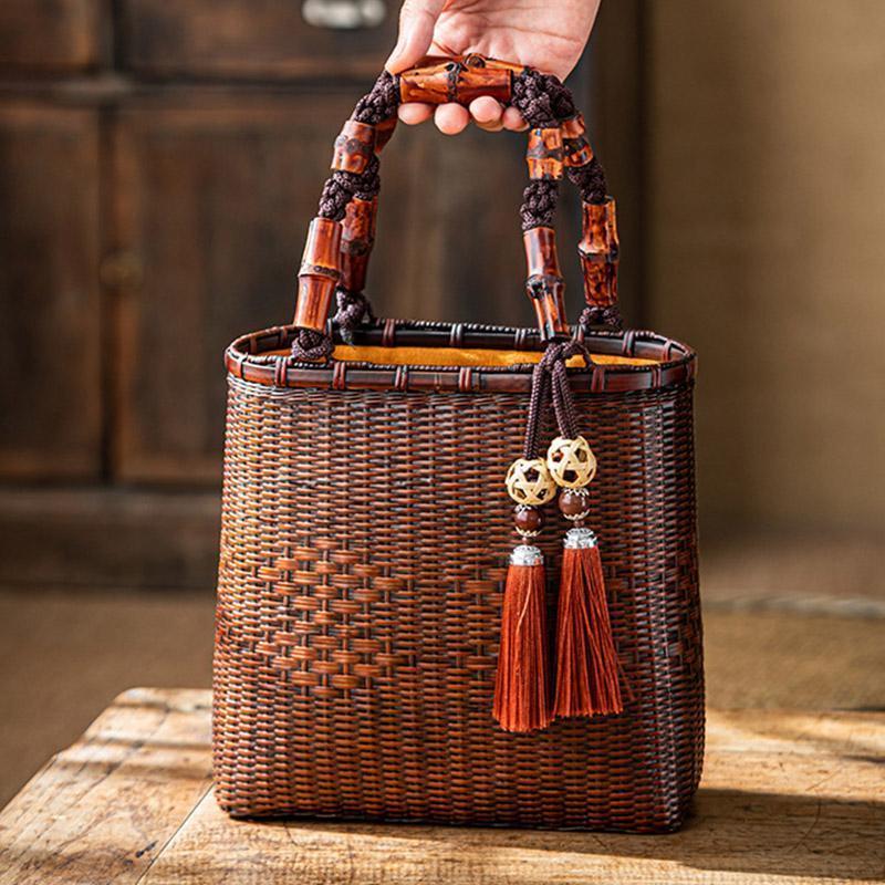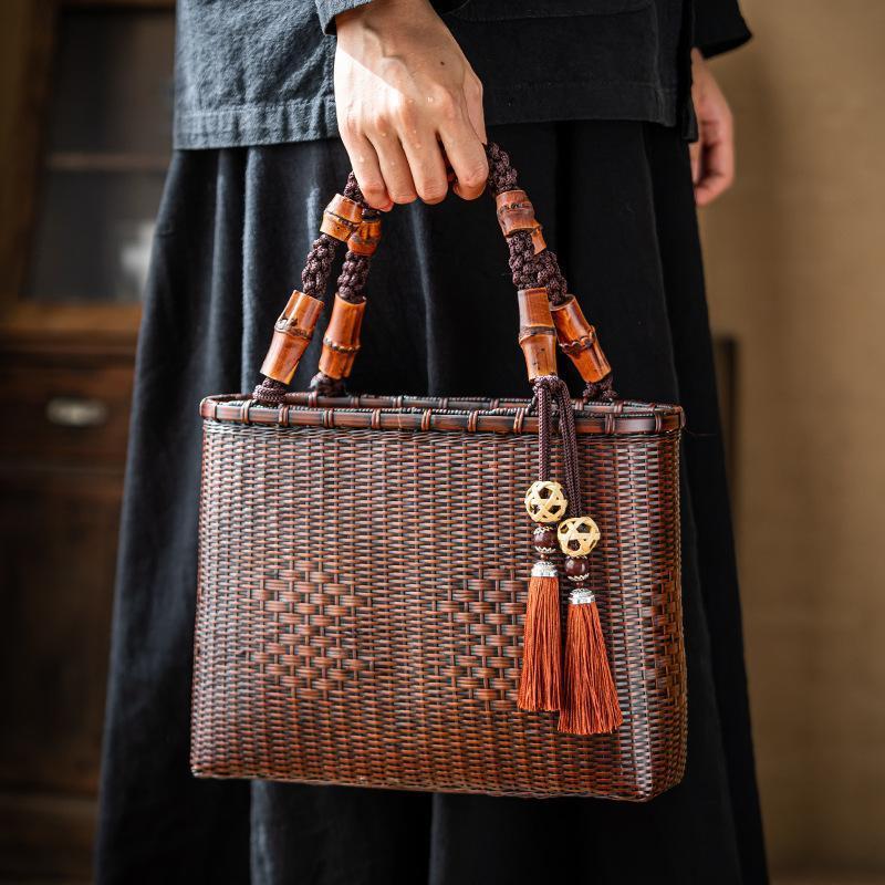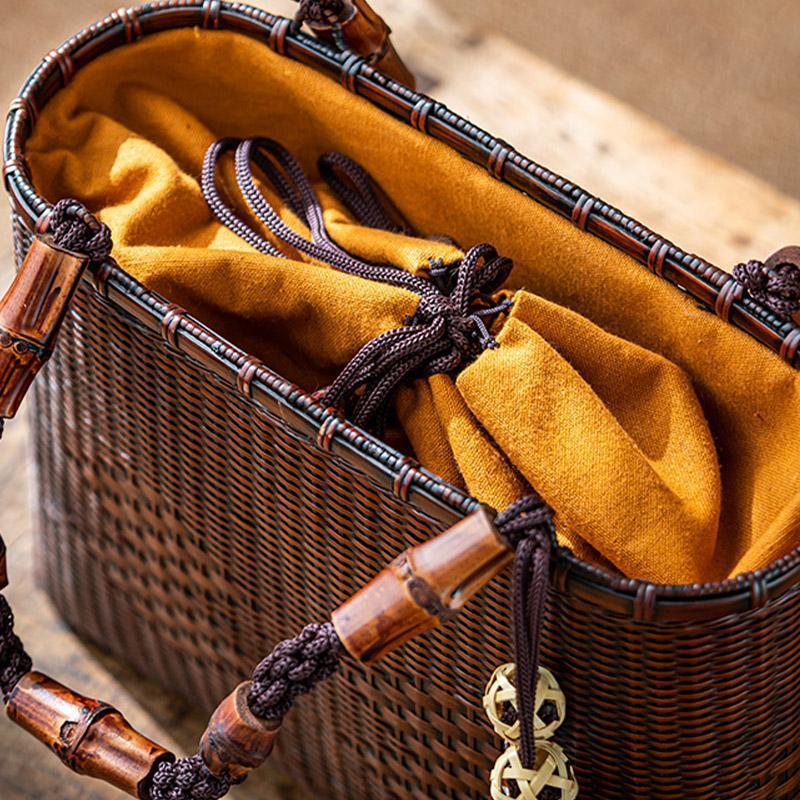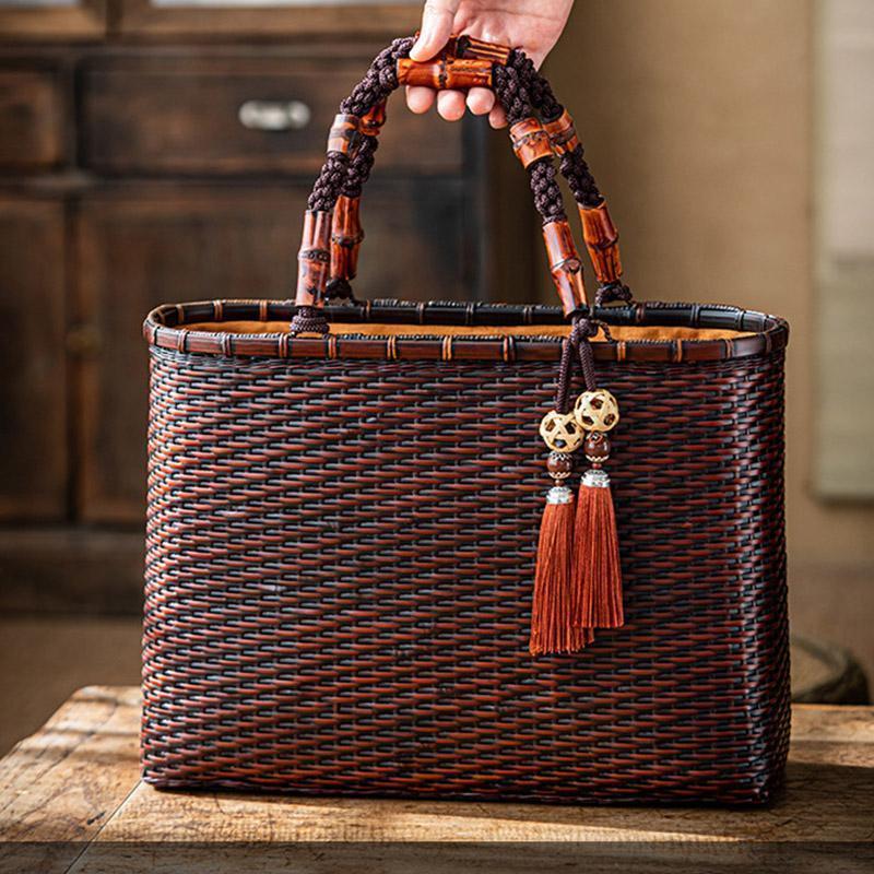バッグ 職人手作り 自然竹の編み上げ お買物かご かごバック 籐かご 小物入れ 漆器 工芸品 茶道具 丈夫 大容量 かごバッグ