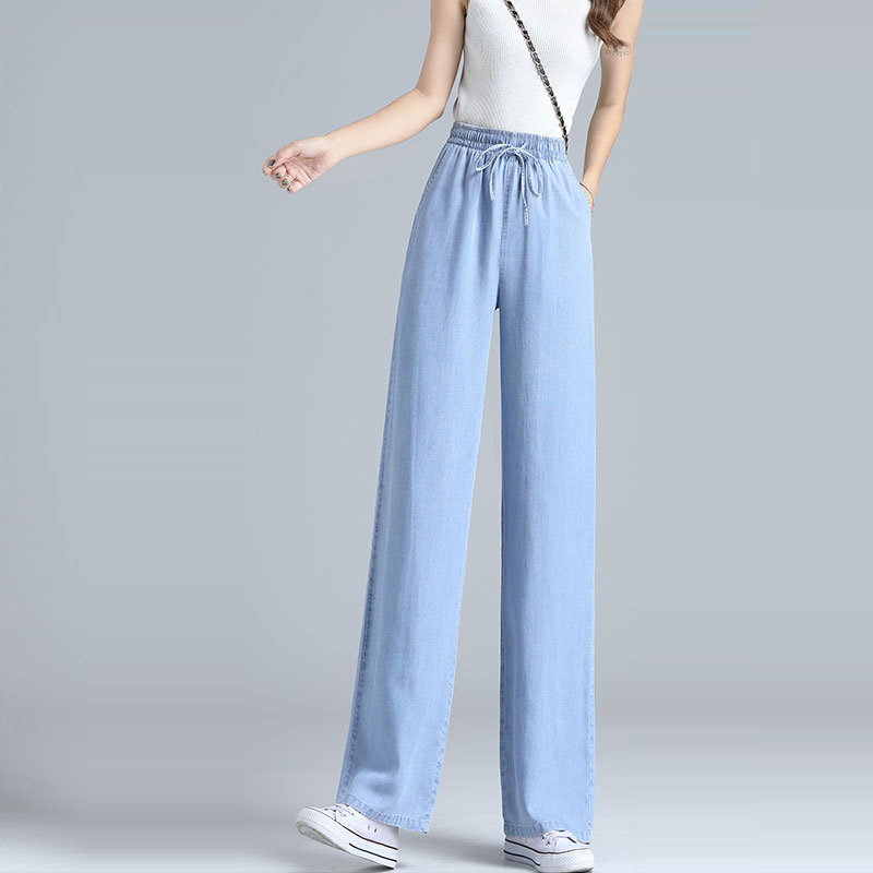 3枚200OFF 冷感ジーンズ ウエスト調整可で華奢見え-ハイウエストストレートデニムパンツ-ジーンズ-デニム-レディース 春 夏 韓国ファッション 四節適用着痩せ脚長効果
