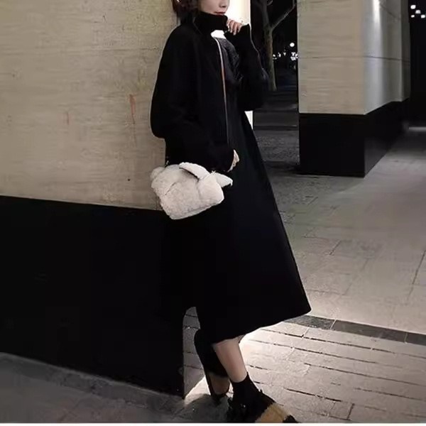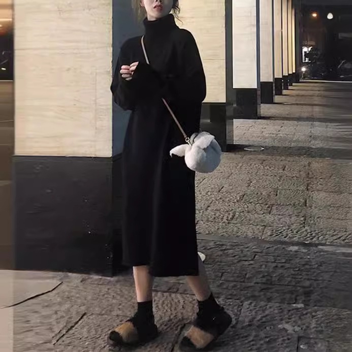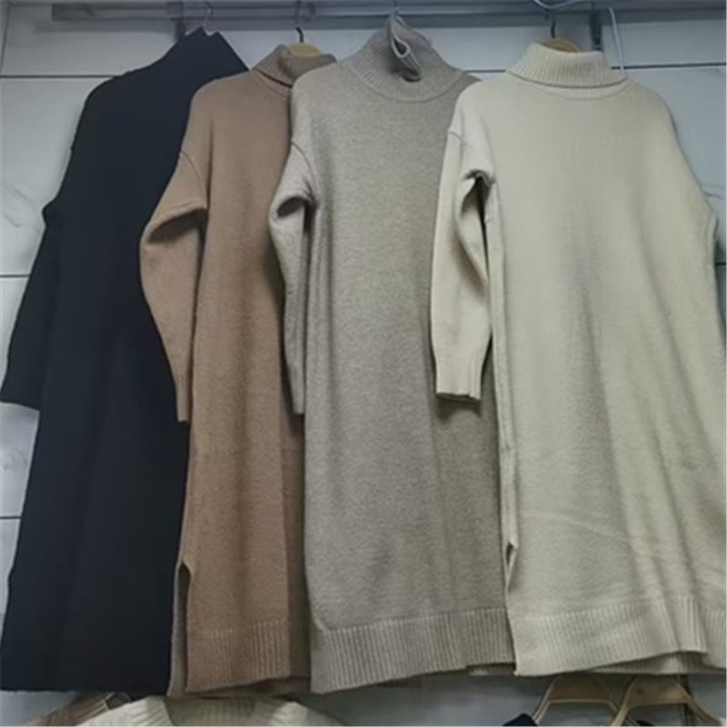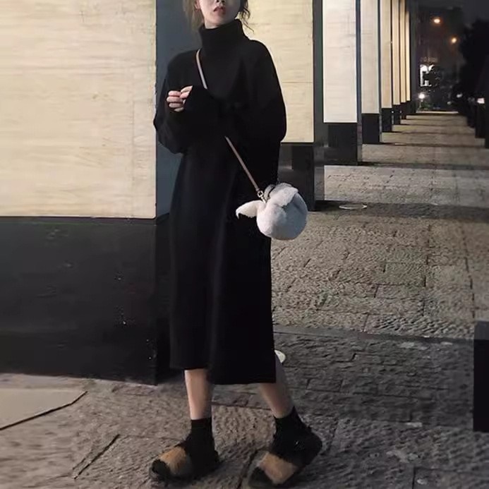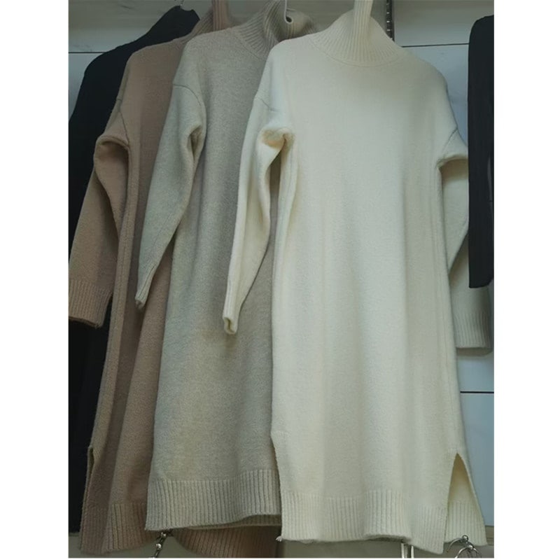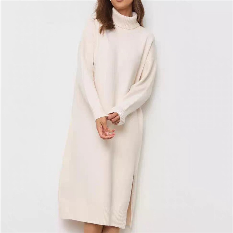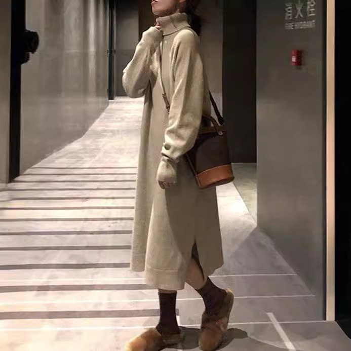 ハイネック編みの内側にコートロングセーターワンピース膝丈ボトミングと秋と冬のファッション気質 女性用ドレス ニットワンピ