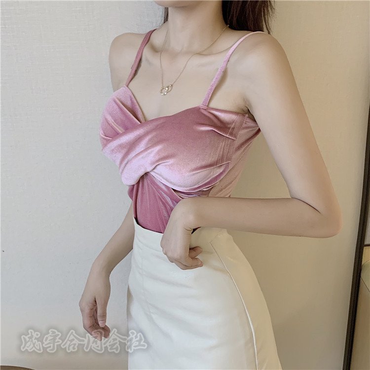 ベロア キャミソール カップ付き レディース ノースリーブ Tシャツ タンクトップ 無地 コーデ イ 母の日 シャツ ブラウス