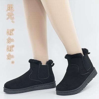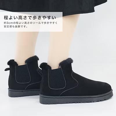 秋冬厚底ショートブーツレディース裏起毛ブーツショートブーツサイドゴアスリッポン暖かいボアカジュアルスノーブーツブーツサイドゴア人気防寒
