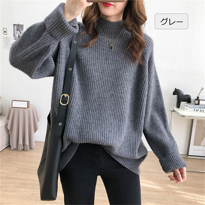 ニット セーター 秋 長袖 チュニック レディース トップス リブニット 長袖ニット ニットセーター ハイウエスト ドルマン プルオーバー カットソー ニット オシャレ ニットソー 無地 セーター 大