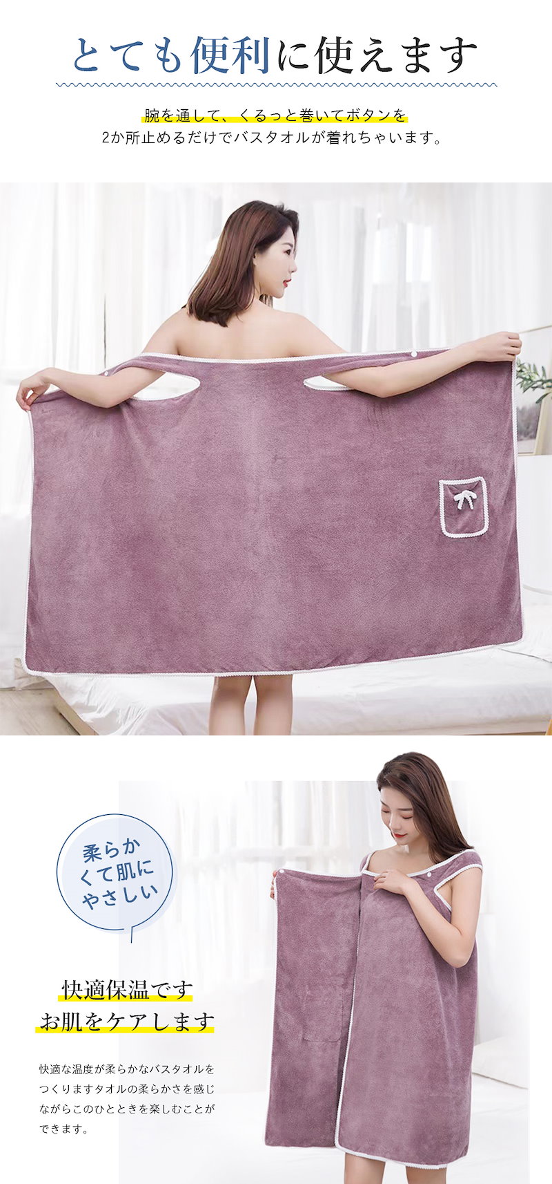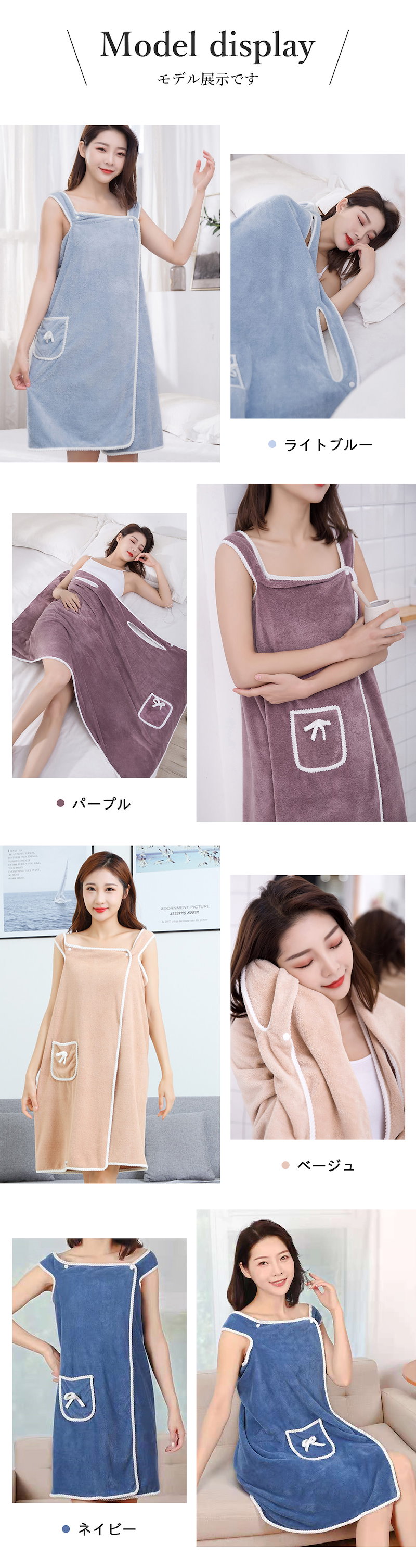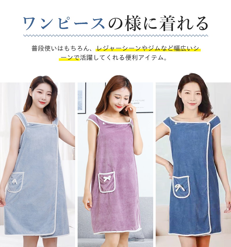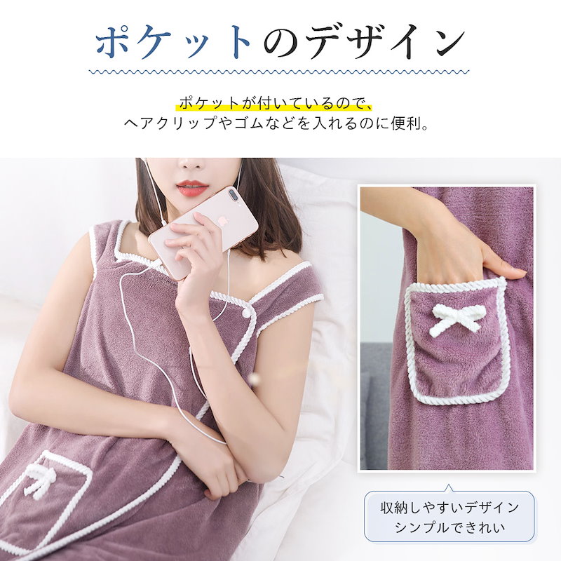 肌触り抜 天使の着るバスタオル バスローブ 大きい サイズ バスタオル タオル ラップタオル レディース 海 プール ジム 旅行 大判 可愛い リボン 無地 ポケット付 マイクロファイバー