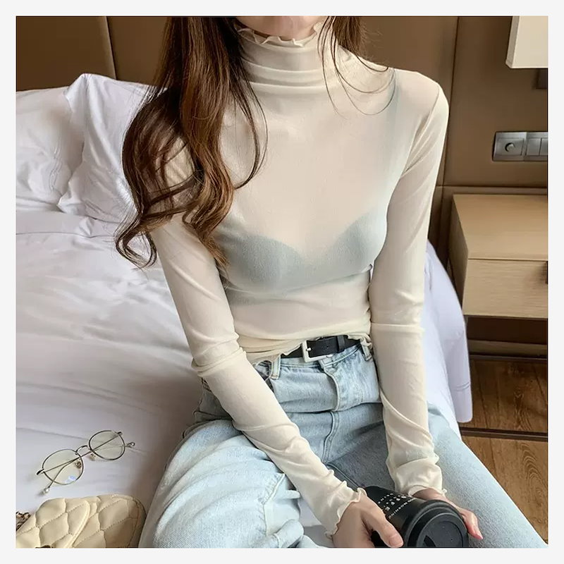 透け感がモテの秘訣 シアーインナー シアー トップス シアートップス シースルー 韓国ファッション ハイネック インナー ハイネック シースルー カットソー タートルネック レディース
