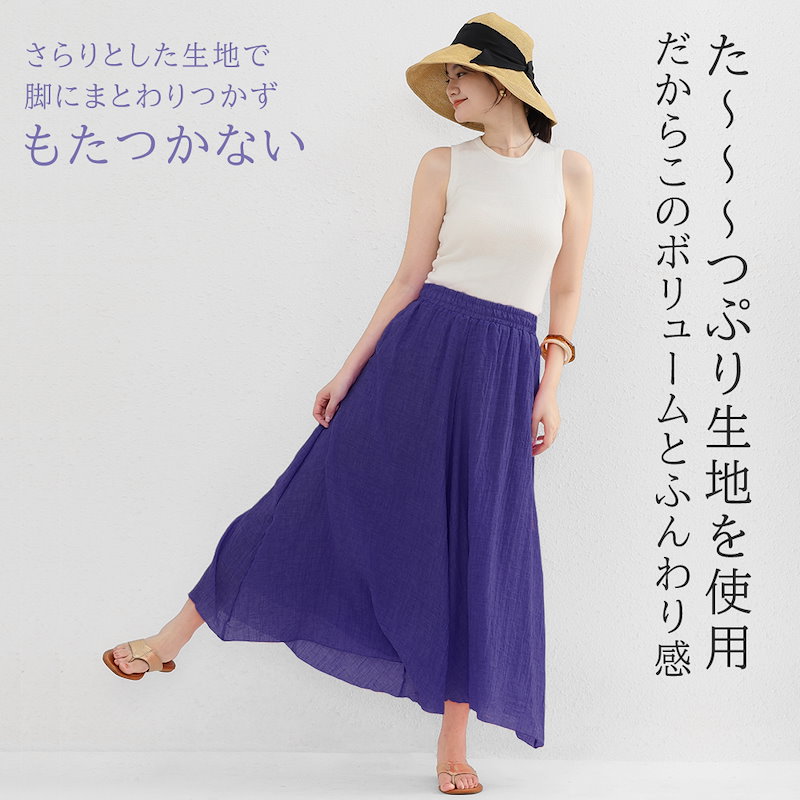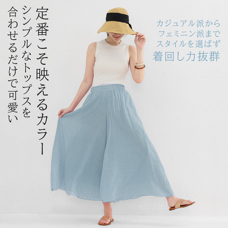 累計20,000着以上販売 魔法の麻混ワイドパンツ 空気のような履き心地 全16色 ロングパンツ スカート 清涼感 リネンパンツ リボン ストレッチリネン