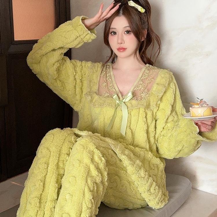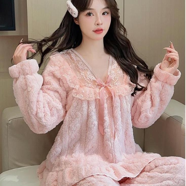 人気 モコモコ パジャマ 柔らかい ルームウェアパジャマホームウェア セット レディース 秋冬 両面フリース パジャマ