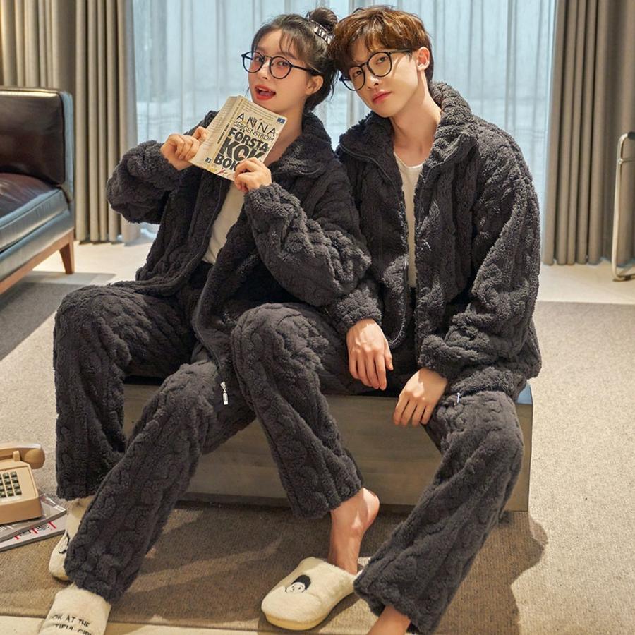 パジャマ カップルペアルック ルームウェア フランネル 冬 ペアパジャマ長袖 パジャマペアルックお揃 パジャマ