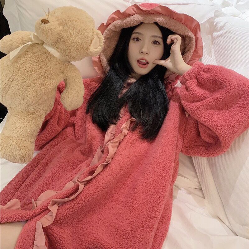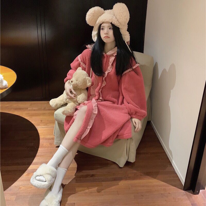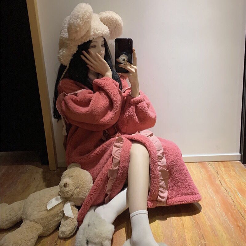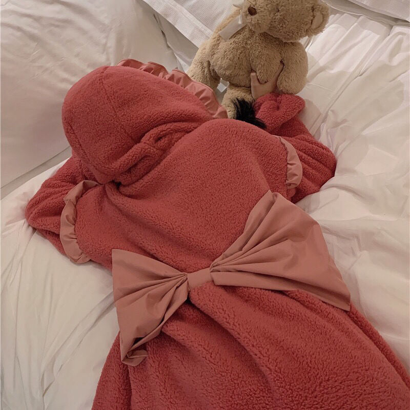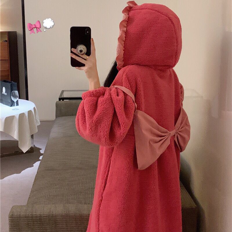 着ぐるみパジャマ 珊瑚絨毯の大きなリボンがかわいい色合わせスリーパー2024秋冬新作ゆったり木耳もとの甘い部屋着 パジャマ メガ割 パジャマ