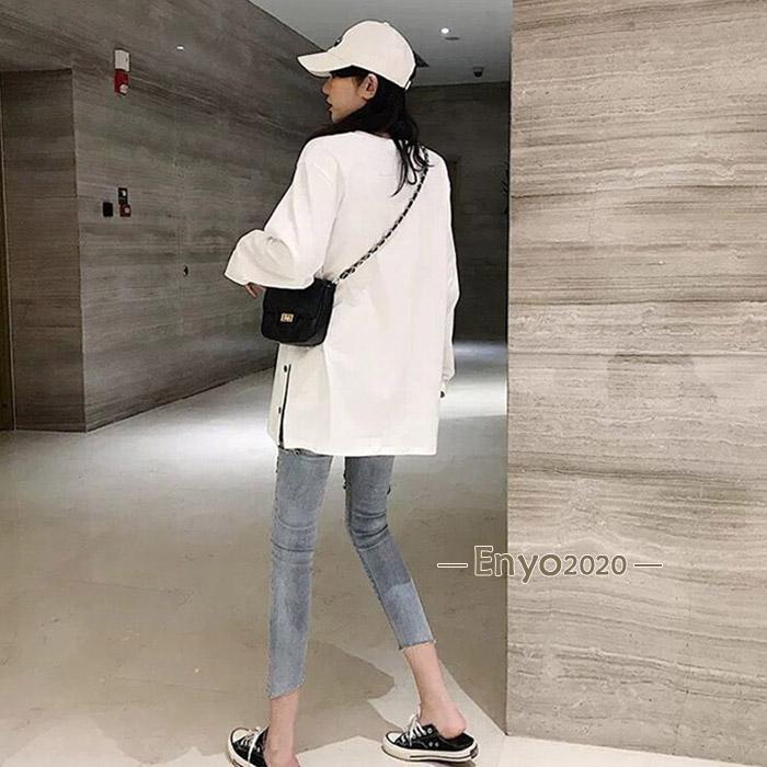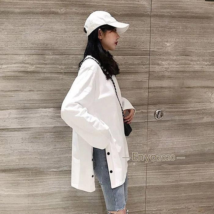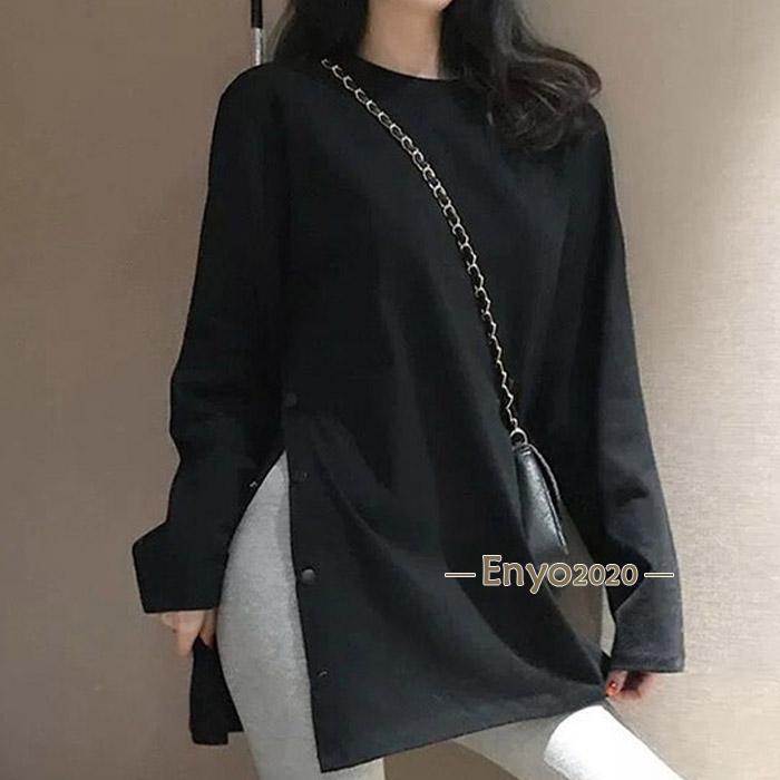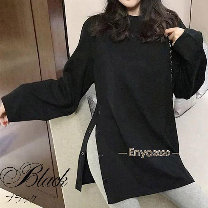 レディース 長袖ロング丈 Tシャツ サイドスリット カットソー トップス 長袖シャツ 万能Tシャツ ティーシャツ クルーネック チュニック丈 無地 カジュアル