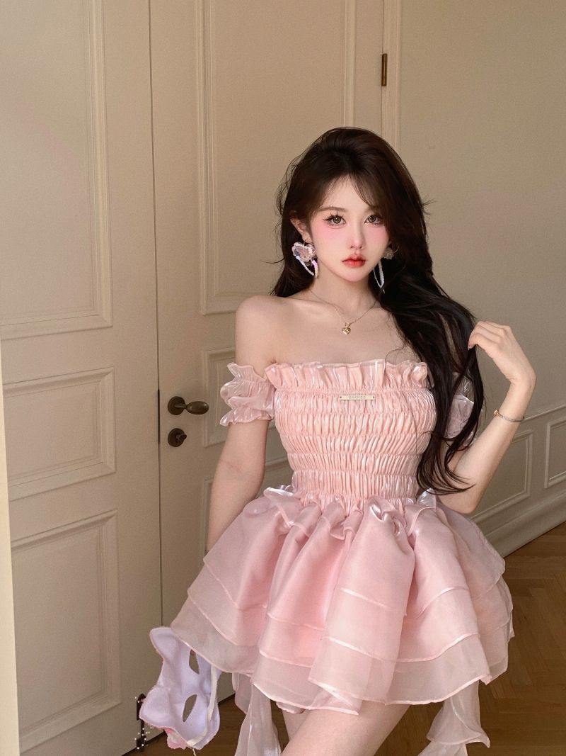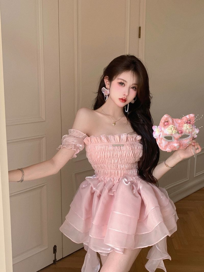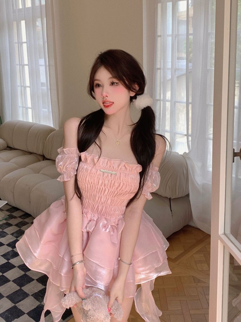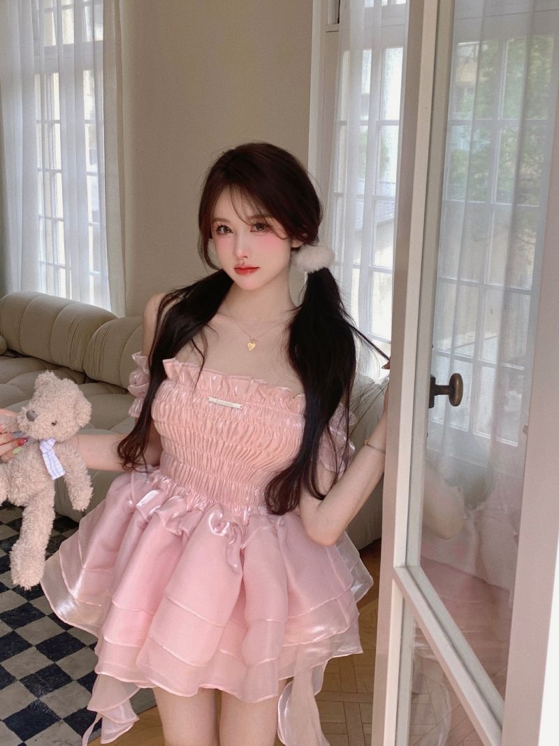 ロリータ ドレス 夏 ピンク ポンポンスカート ケーキのスカート ワンピース コスチューム
