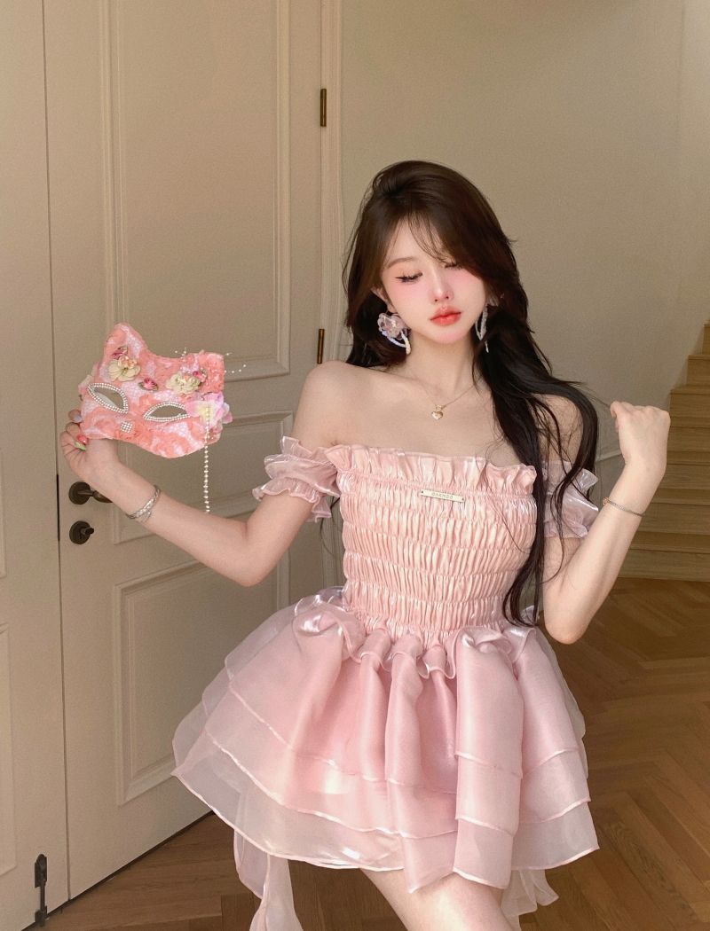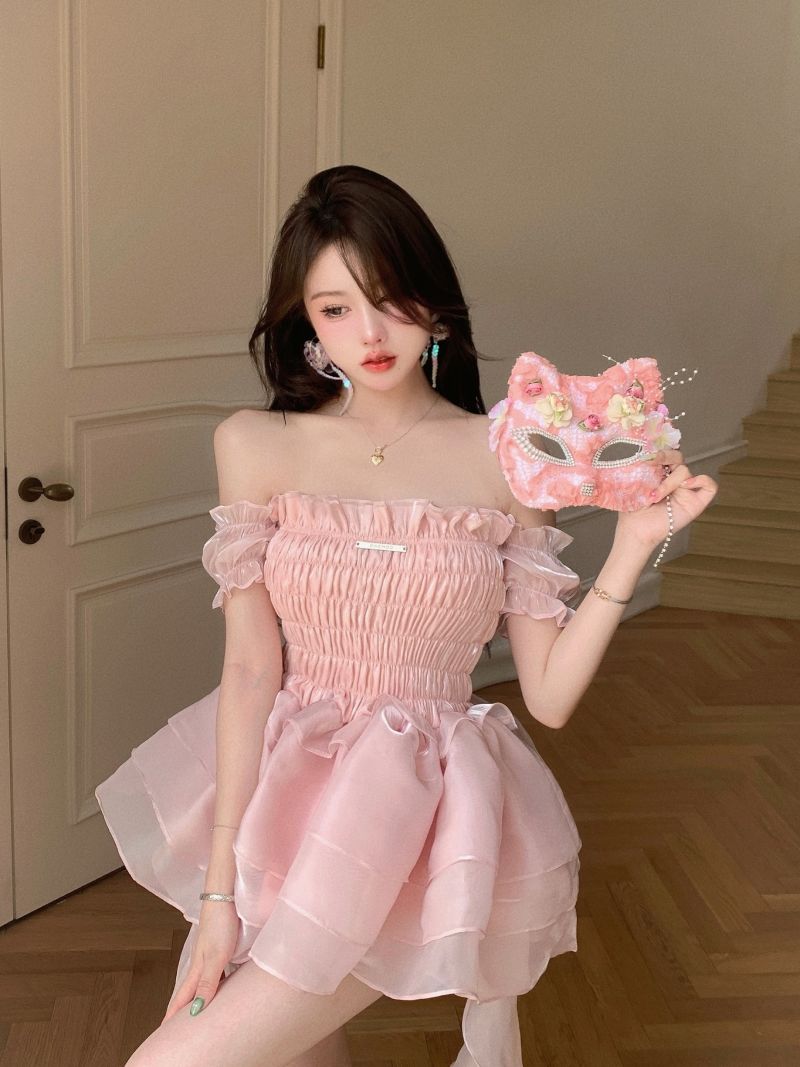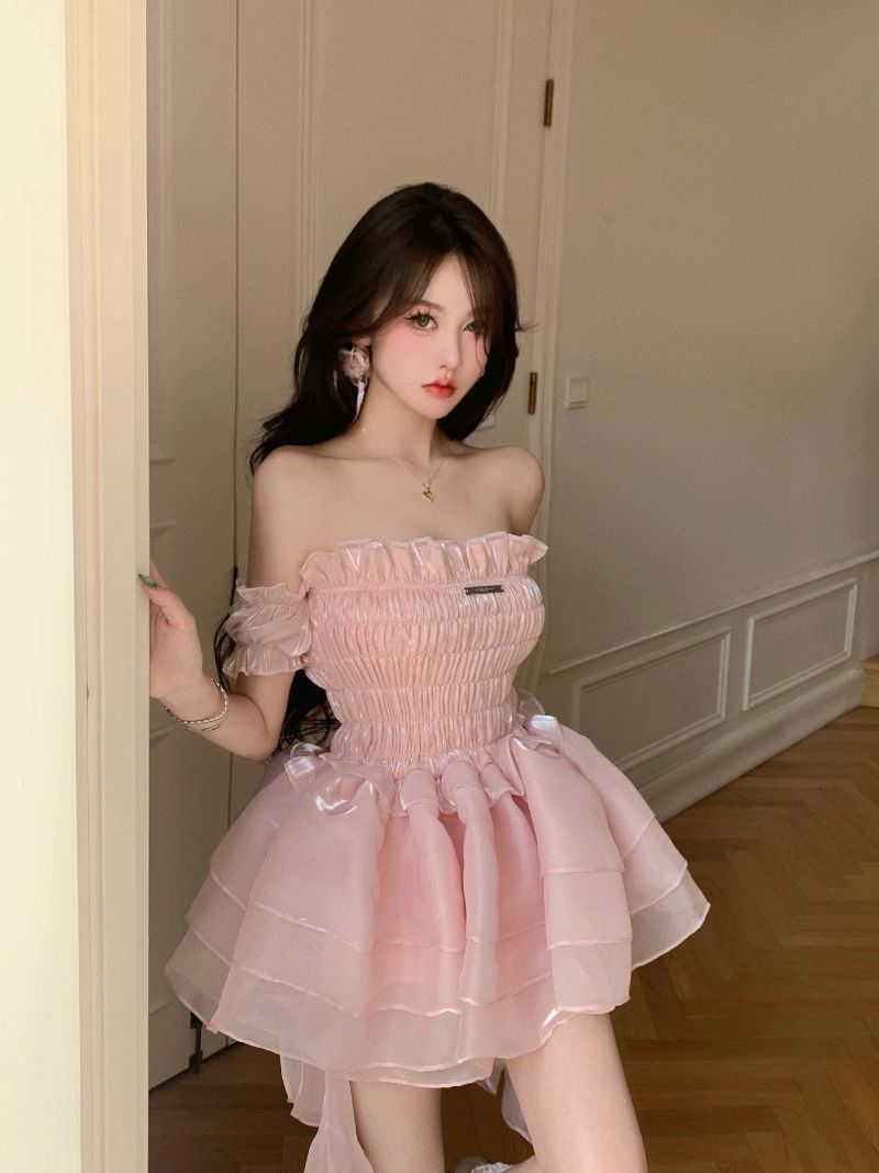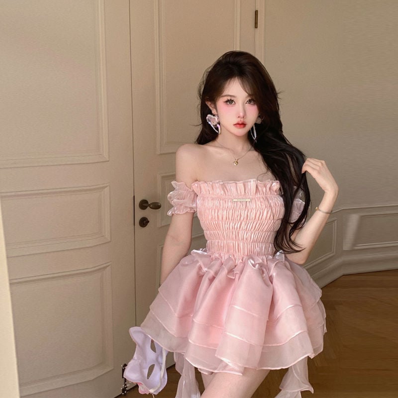 ロリータ ドレス 夏 ピンク ポンポンスカート ケーキのスカート ワンピース コスチューム