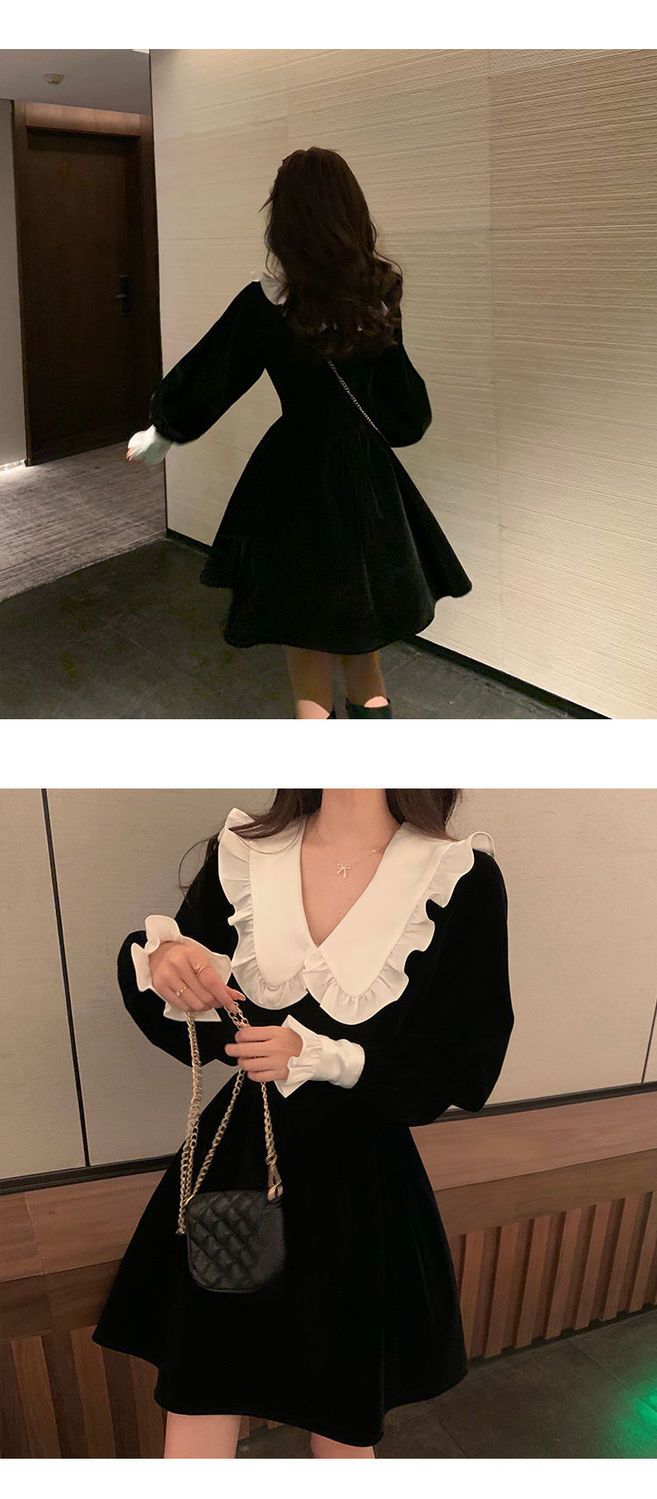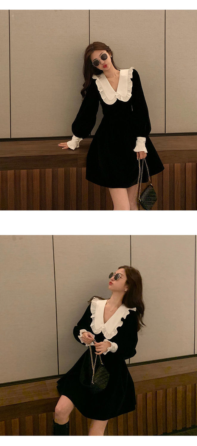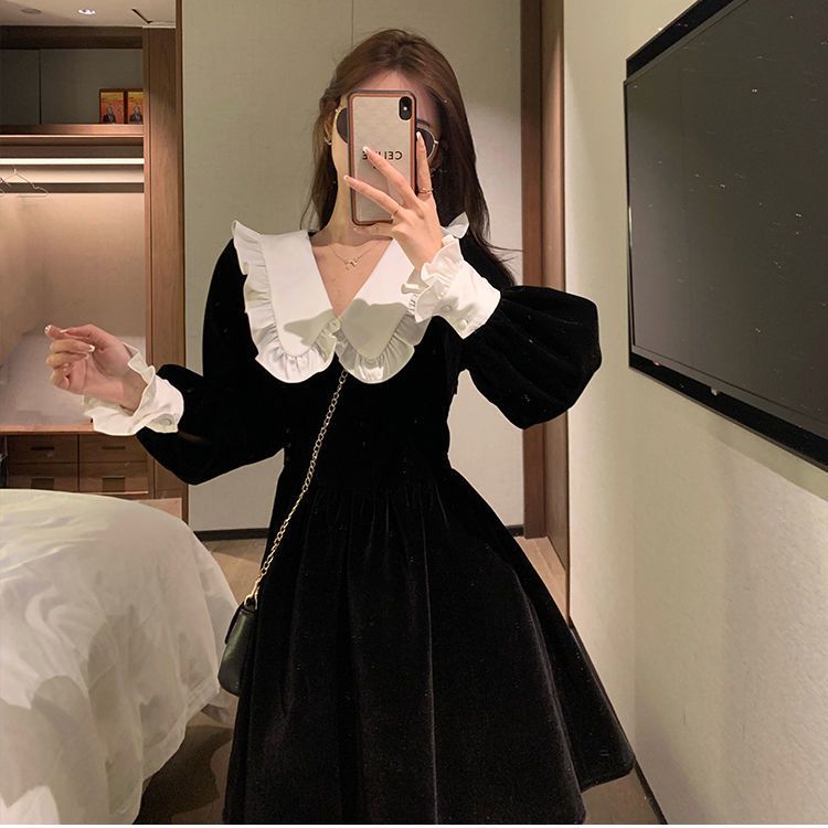 ワンピースレディース ベビーカラー ワンピース 黒スカート シックなドレス 秋 ファッション 百掛け やせて見える その他 ワンピース ドレス