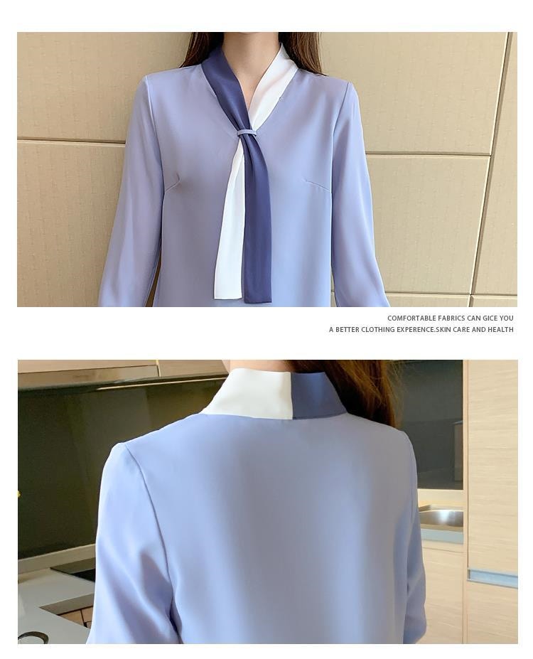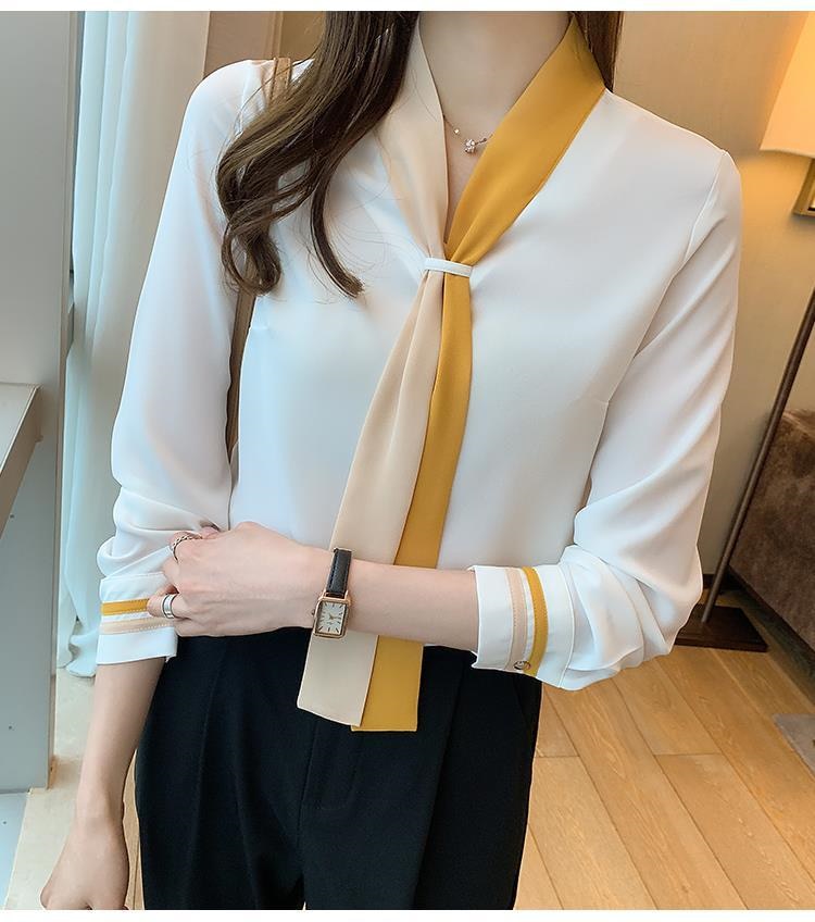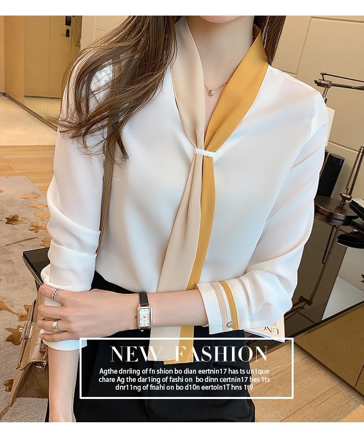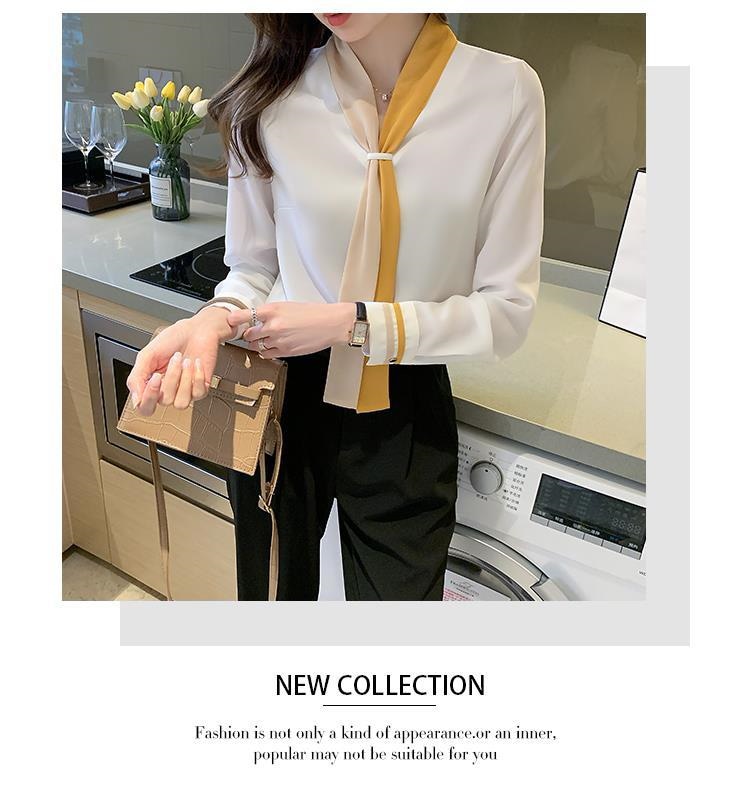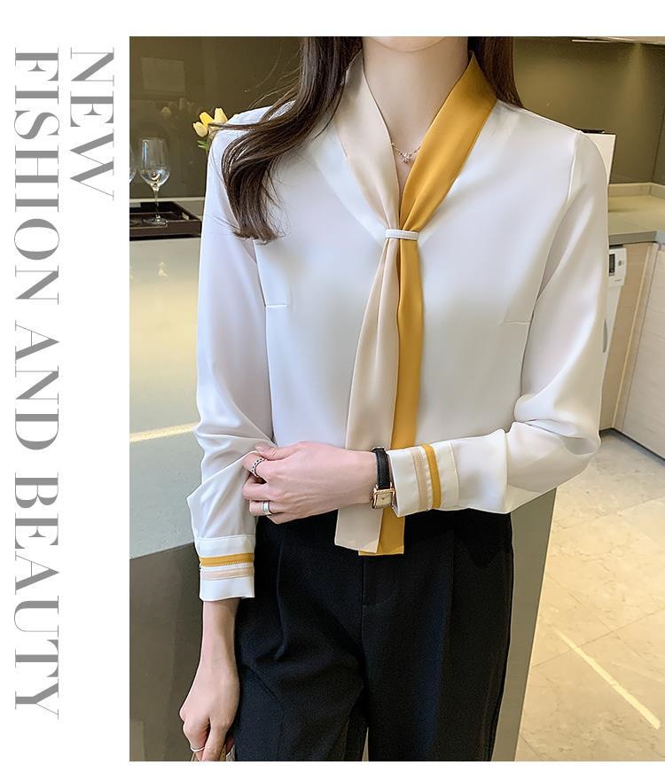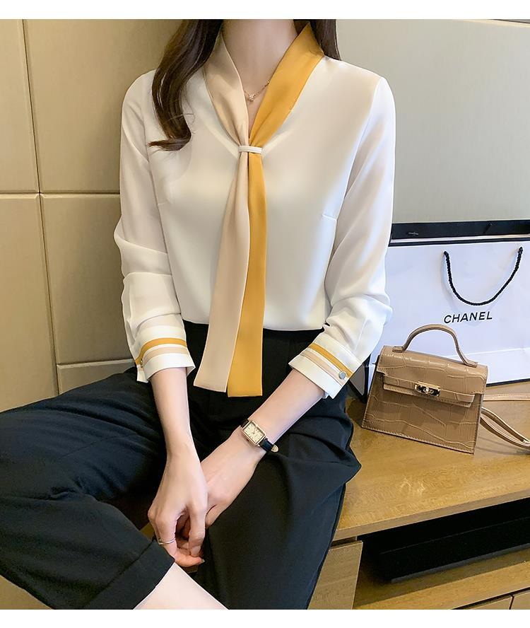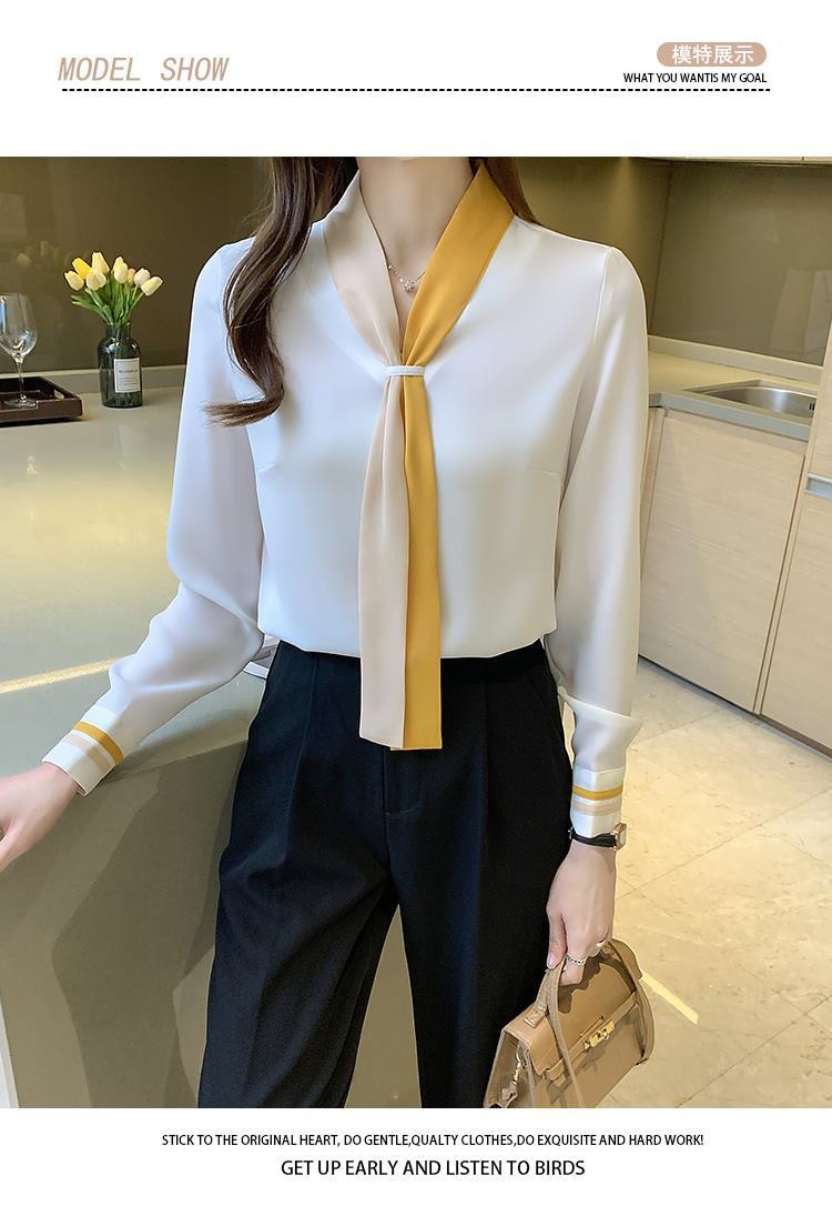 ブラウス レディース シャツ OL プロフェッショナルシャツ女性春と秋のスーツ襟シフォン長袖ボトミングシャツ シャツ ブラウス
