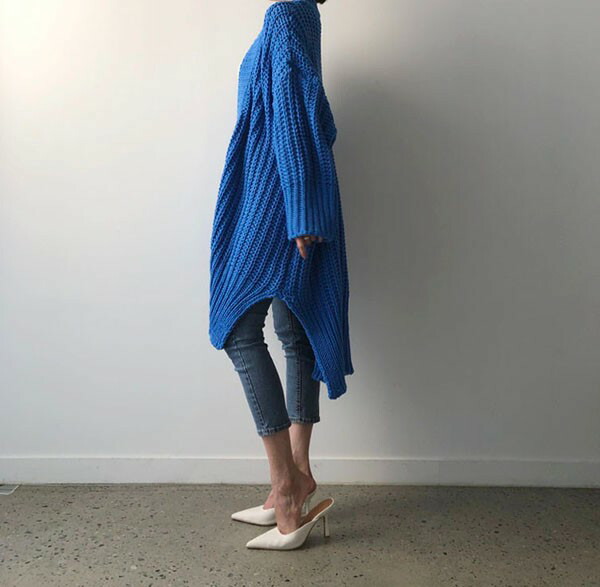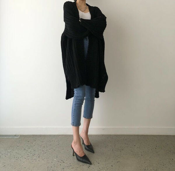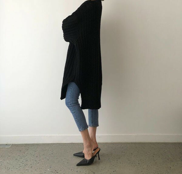 セーター ニット カーディガン ニットカーデ トップス 長袖 春 秋 シンプル 無地 オーバーサイズ ゆるニット ゆったり スリット入り ブルー ブラックdv004s1s1d4