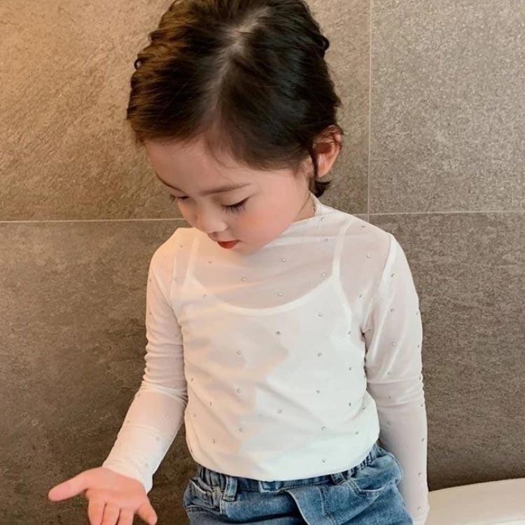 キッズ 冷房対策 シアートップス スパンコール 女の子 レイヤード 2枚セット 薄手 夏 Tシャツ ブラウス
