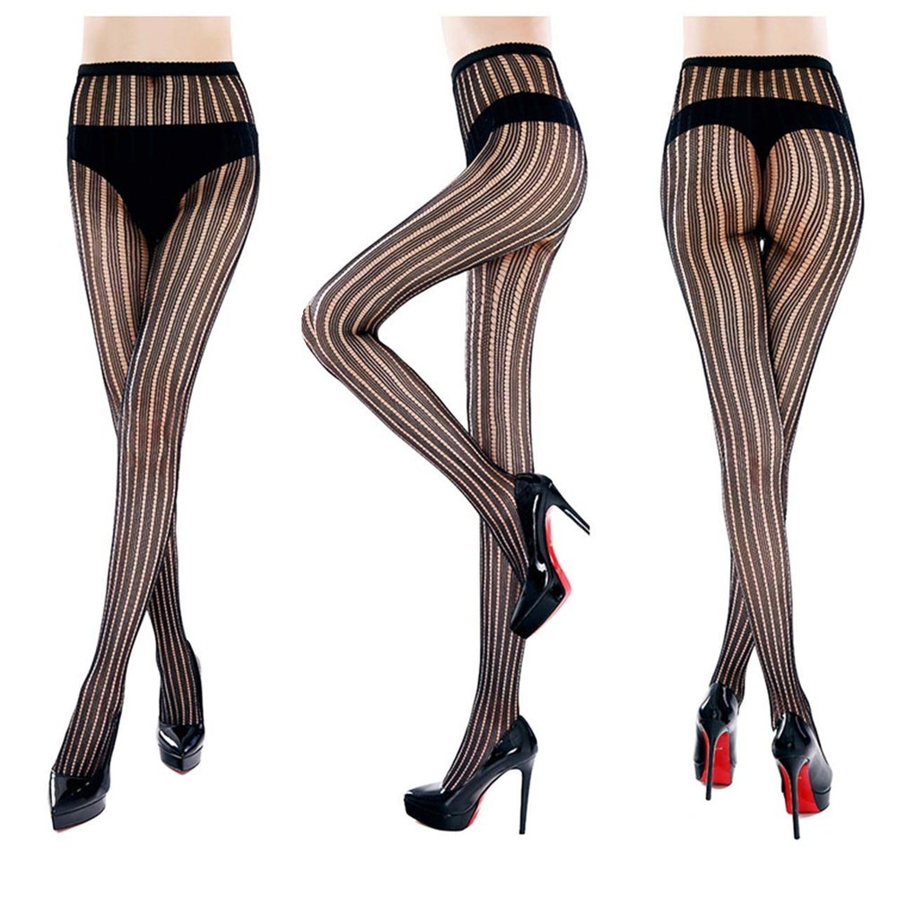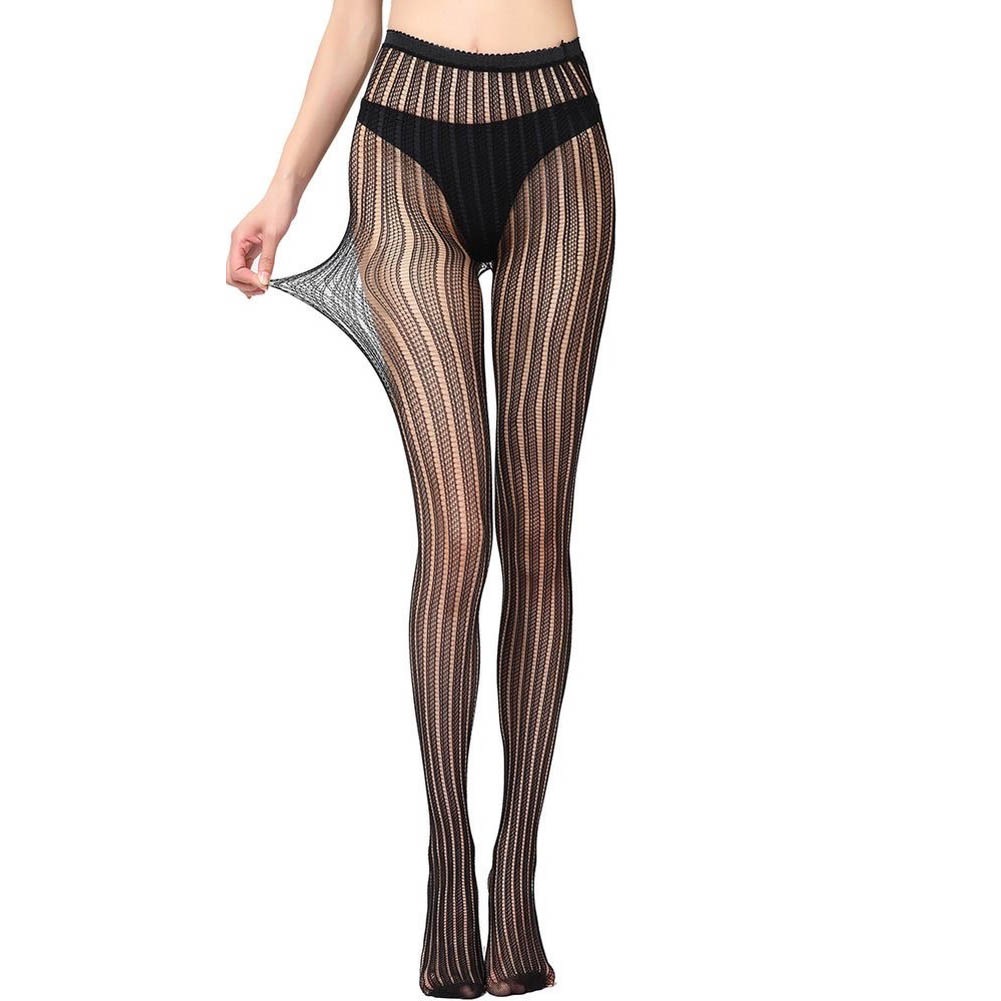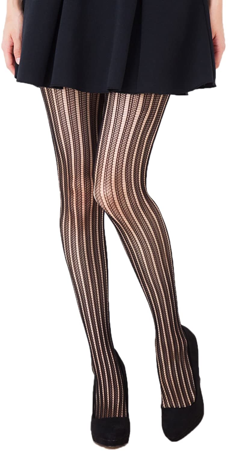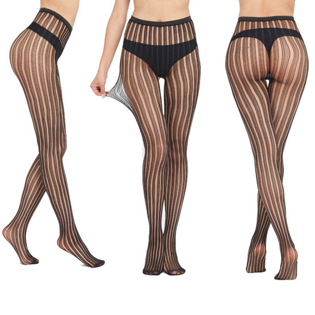 柄ストッキング 網タイツ ストッキング タイツランジェリー 女性 パンスト ブラックストッキング レディース 30デニール フィッシュネット ラッセルレース ハロウィン ブラック ストライプ柄