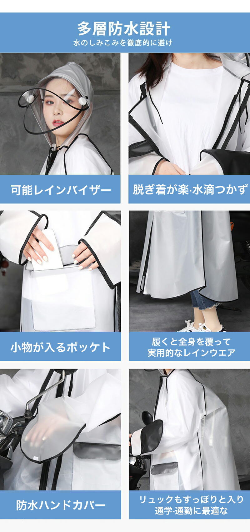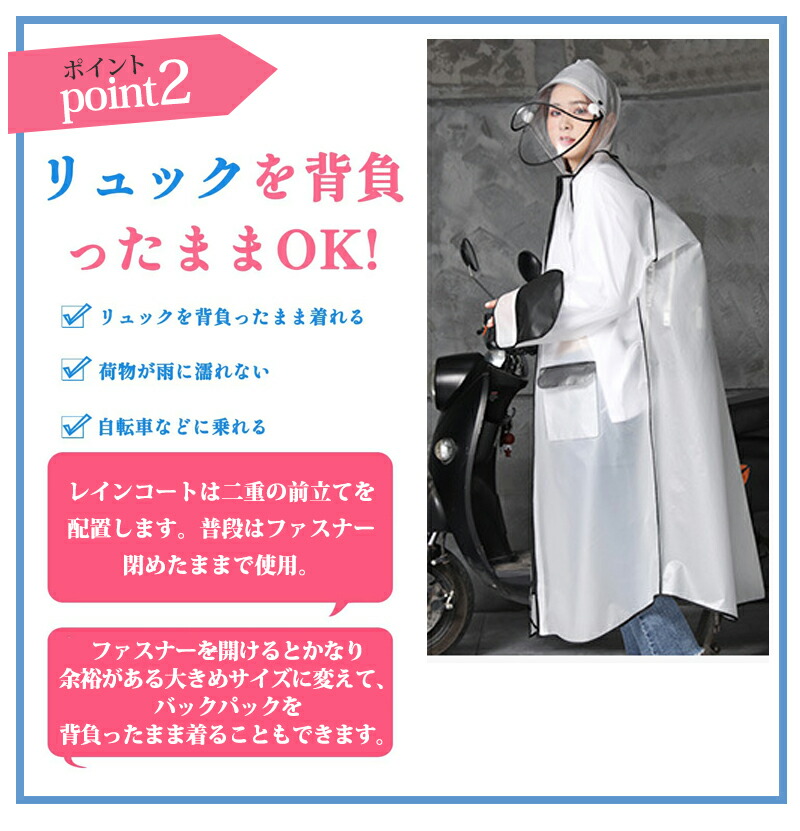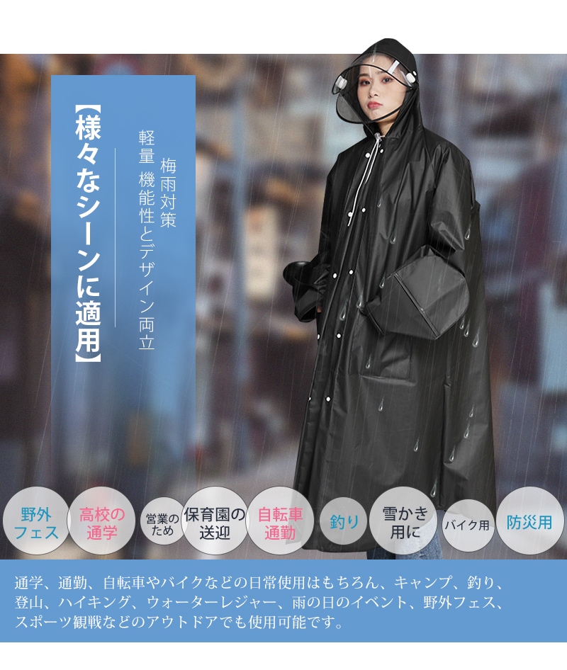 レインコート 男女兼用 ロング丈 自転車 通学 通勤 リュック 保育園 レインポンチョ 二重ツバ アウトドア キャンプ 防災 バイク 野外フェスレインコート 安全ロング丈 ク