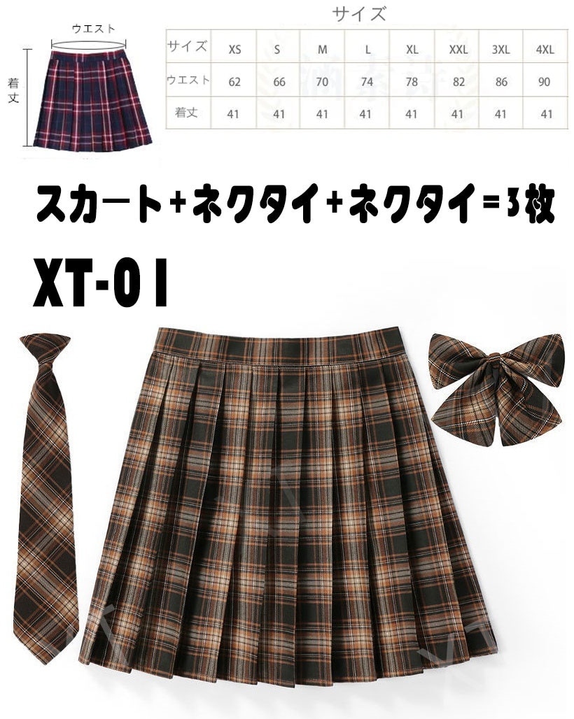 制服 スカートネクタイ+ネクタイ=3枚女子高生 コスチュームコスプレ セーラー服ミニスカート ミニスカート