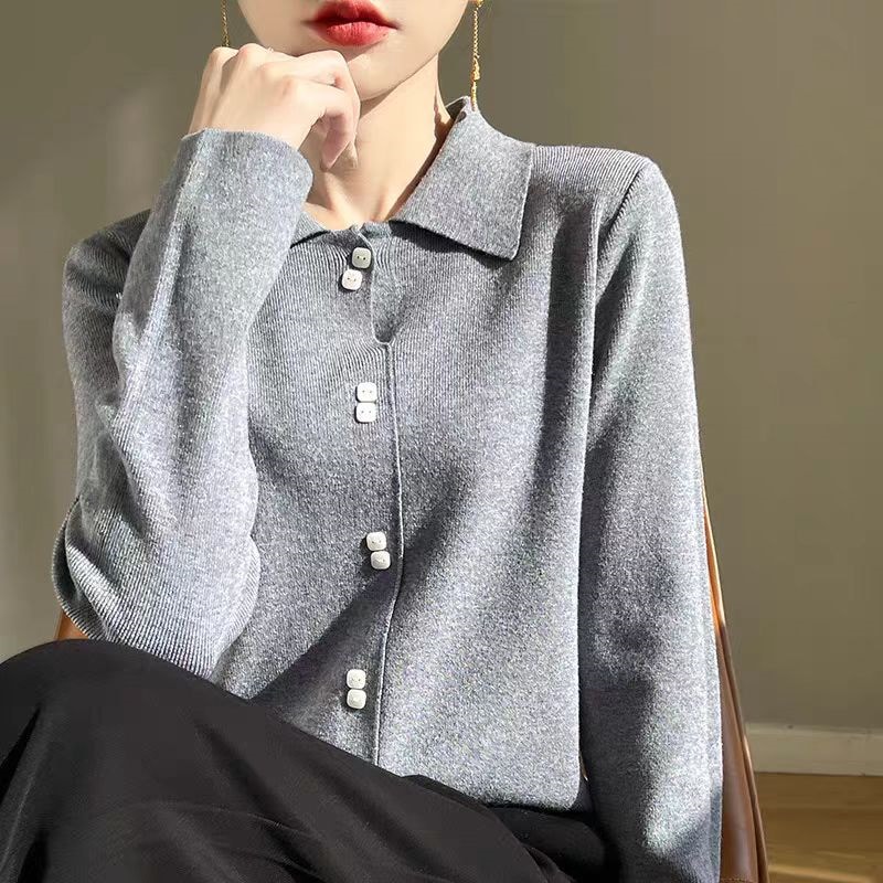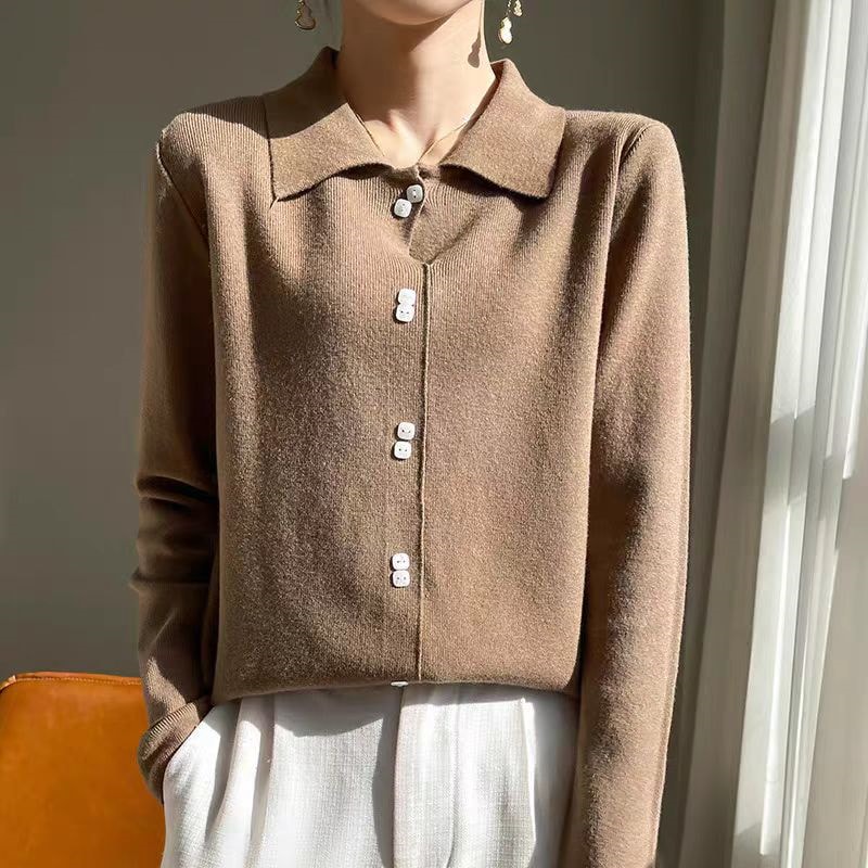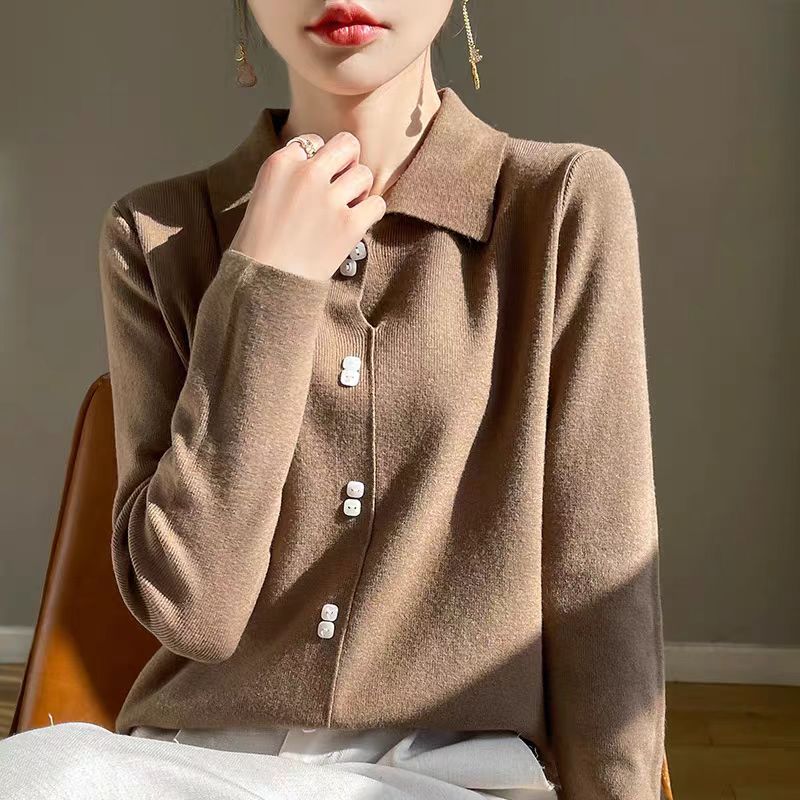 2024新作韓国ファッション秋冬ニット着るだけモテニット 女性服セーター ハイカラー大サイズ無地厚手シャツルーズレイジーウーセーター ニット