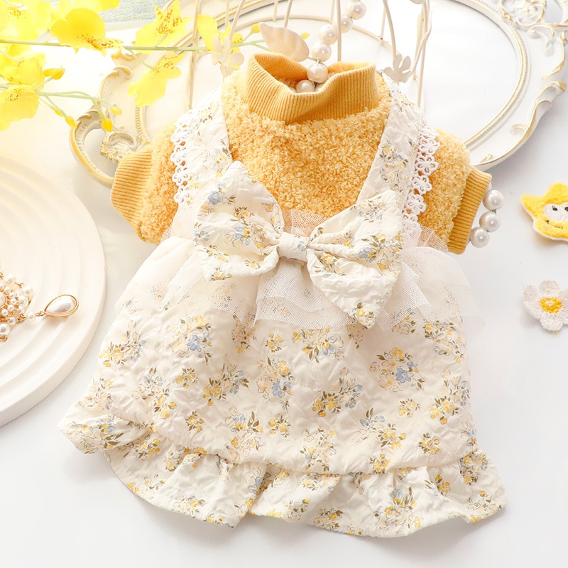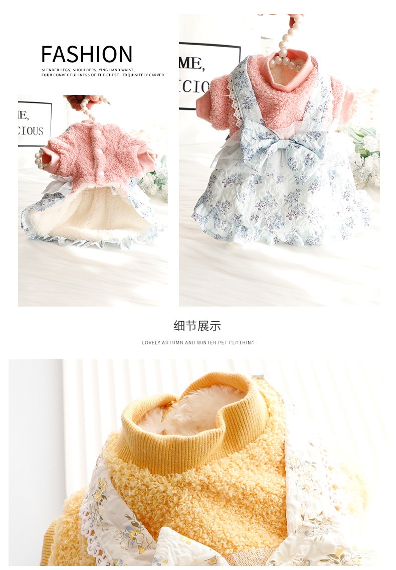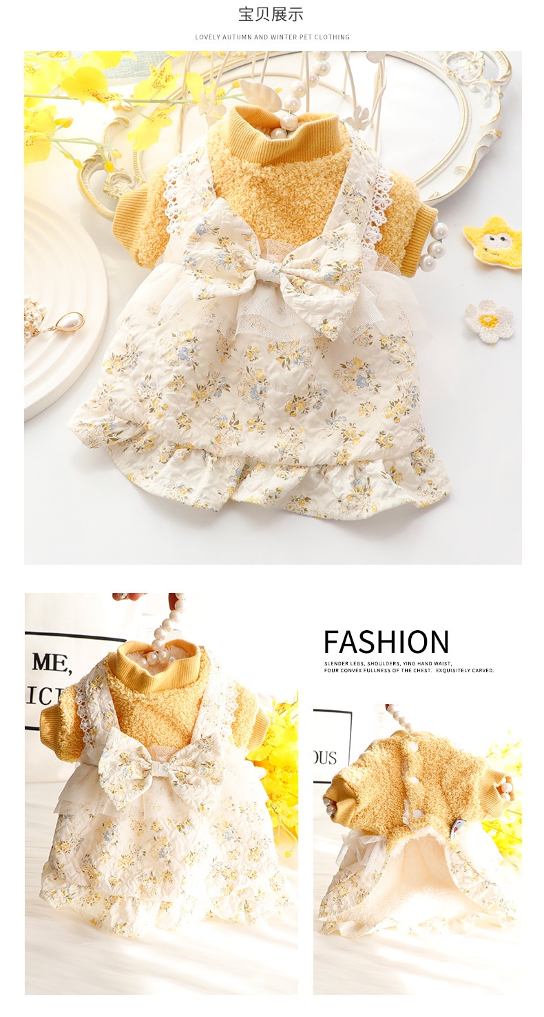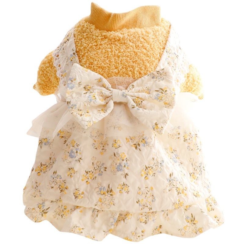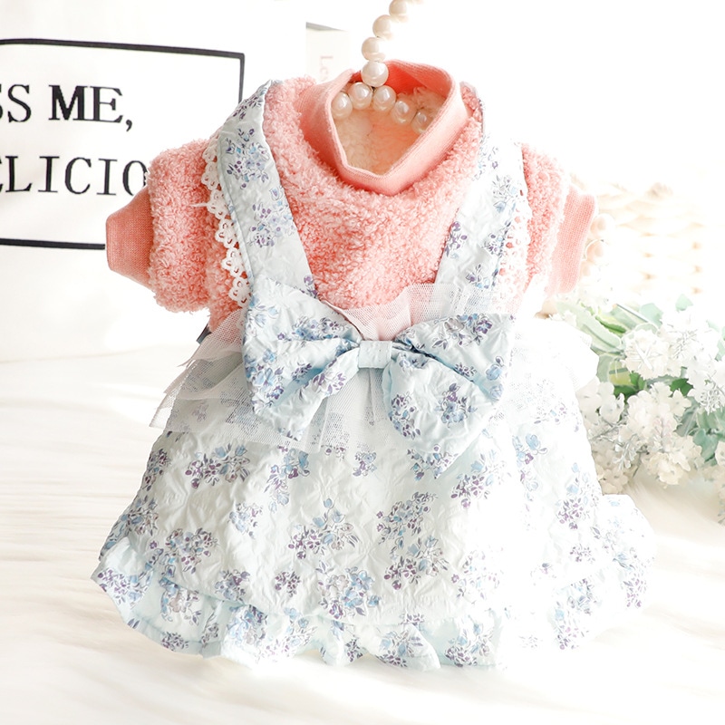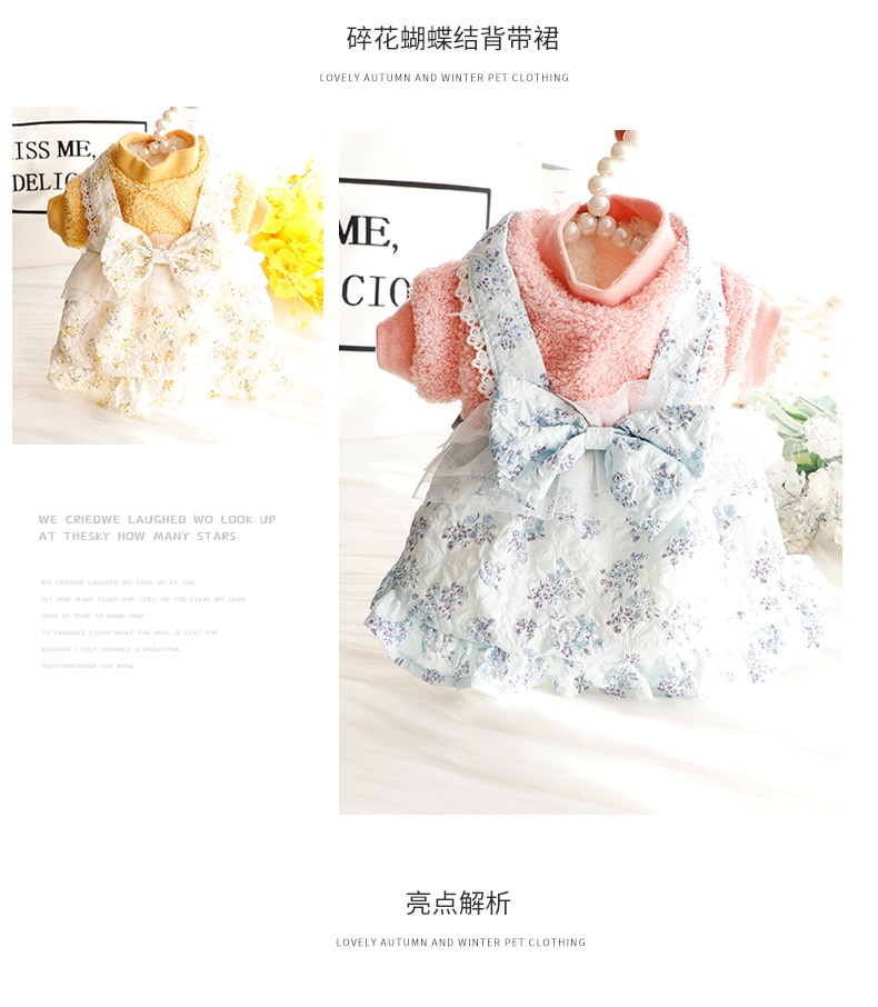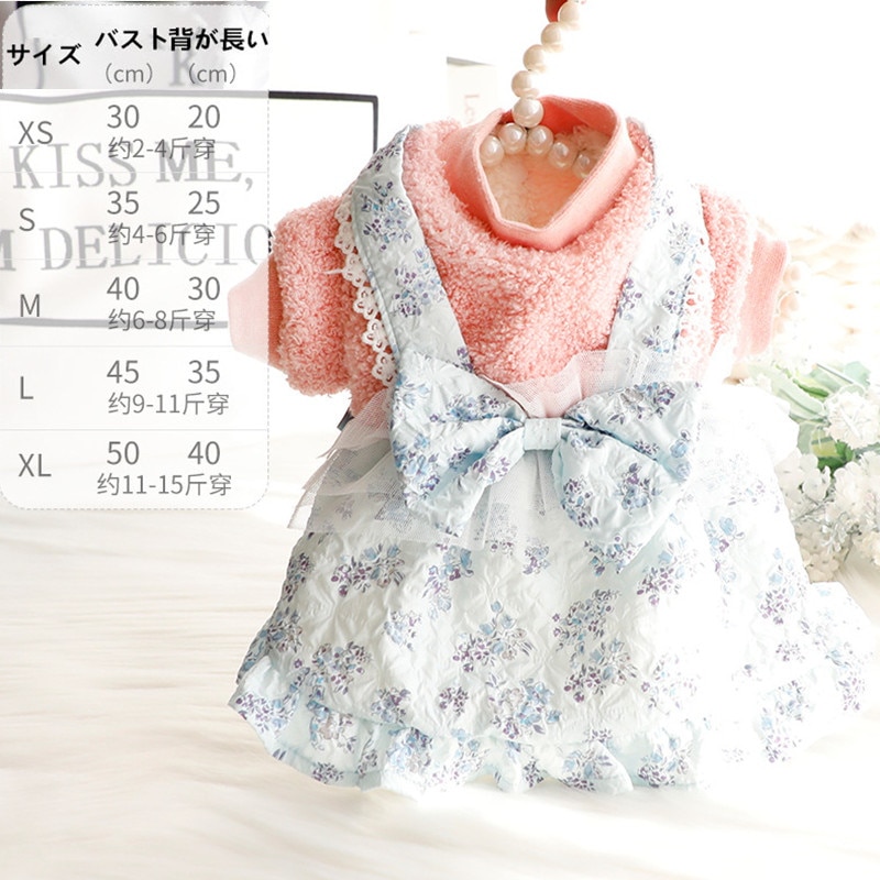 2色春秋冬の新金新品犬の服かわいい猫のバブルスリーブロリータお姫様リボン本ワンピース新生ミルク犬のミルク猫の子犬マシュマロ小型犬ペットテディ服CXDZ