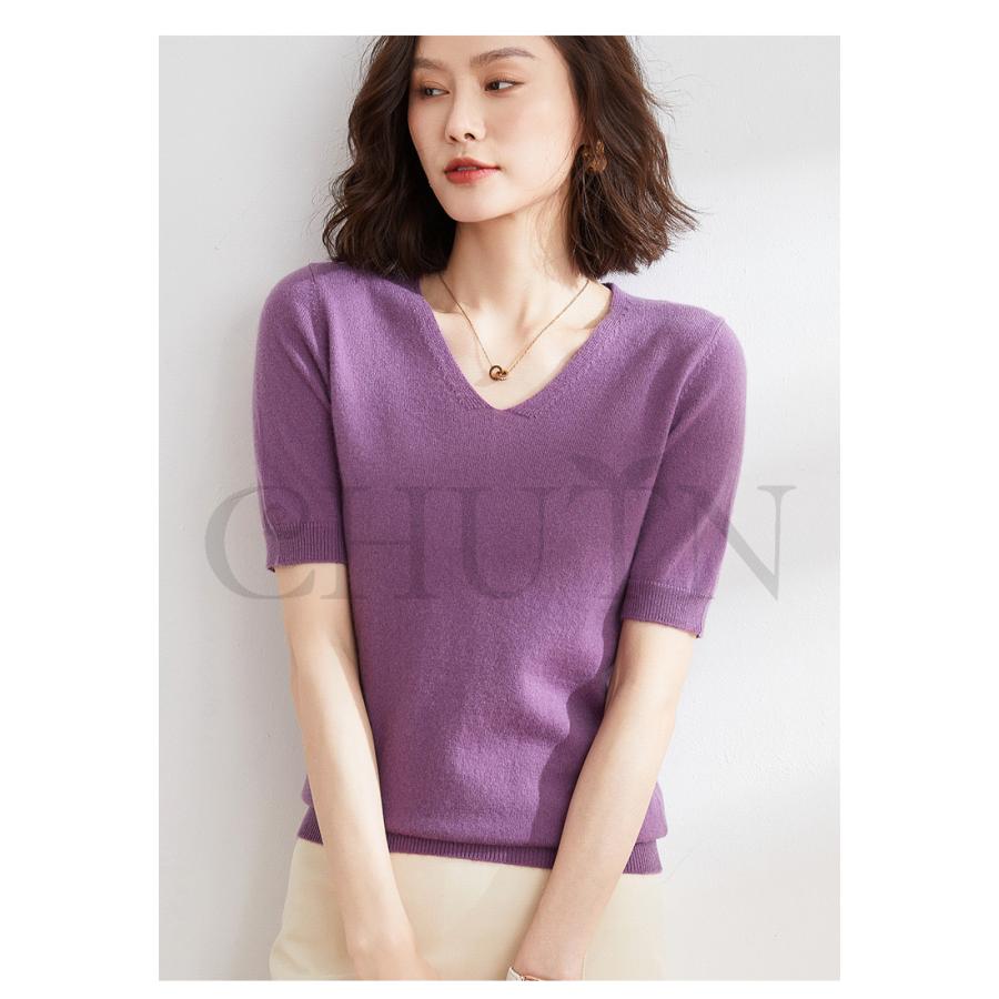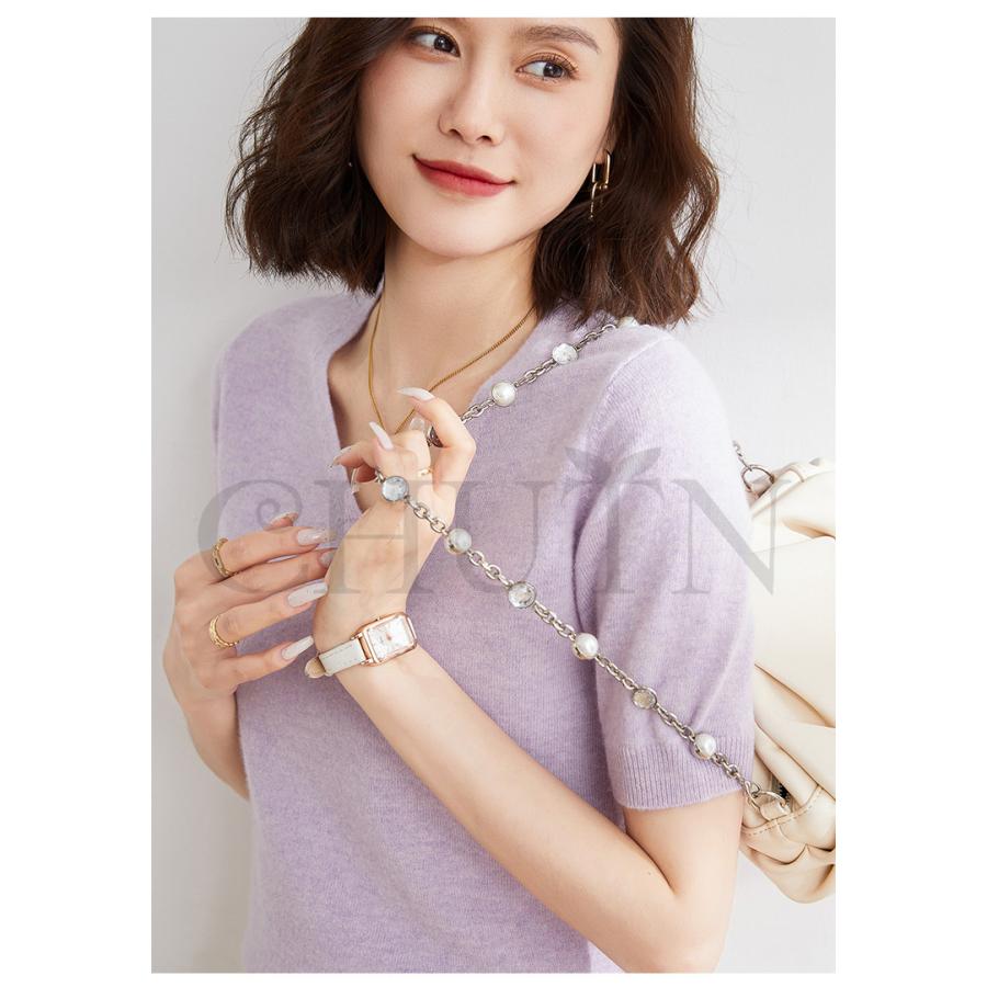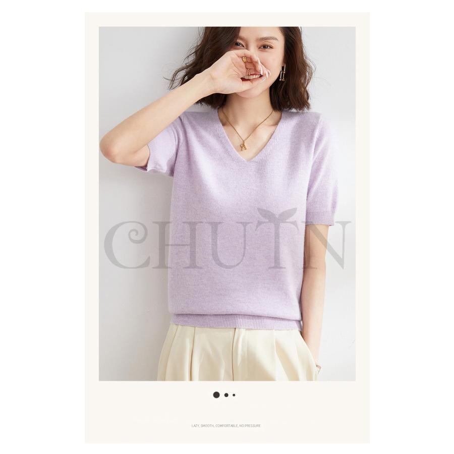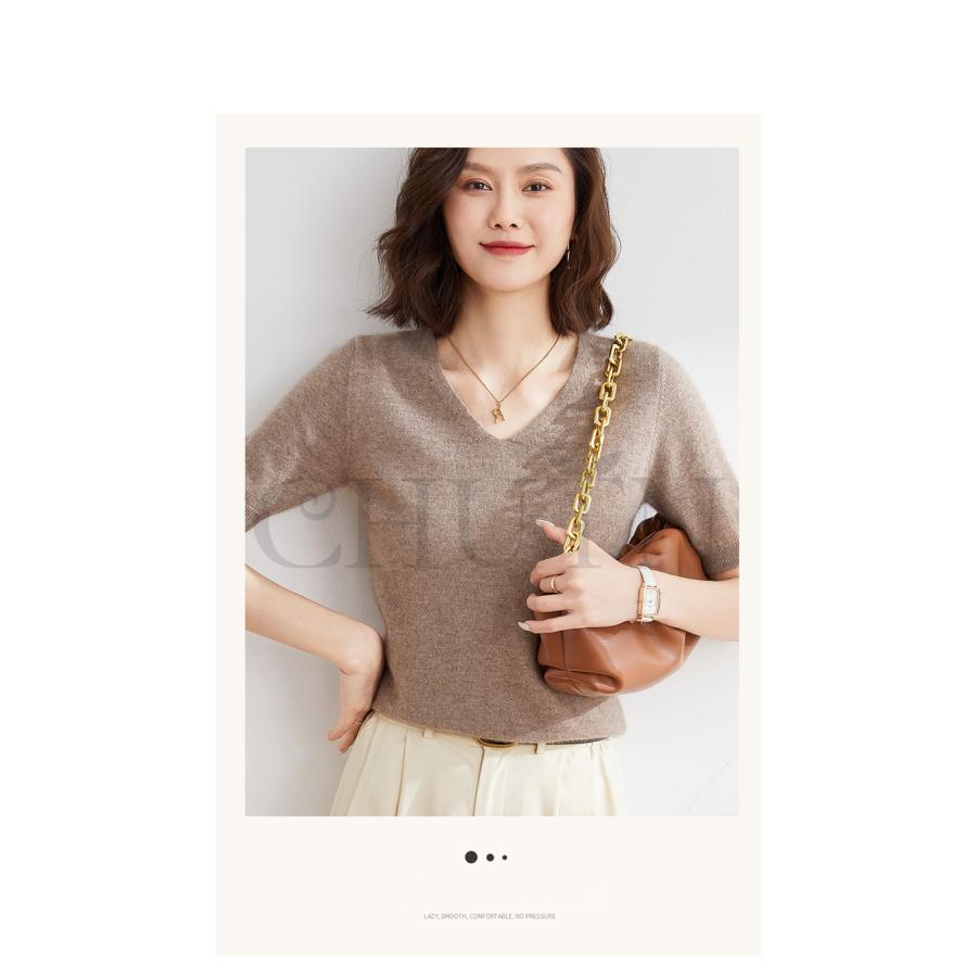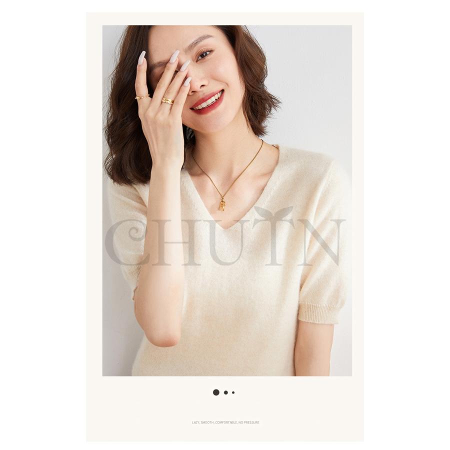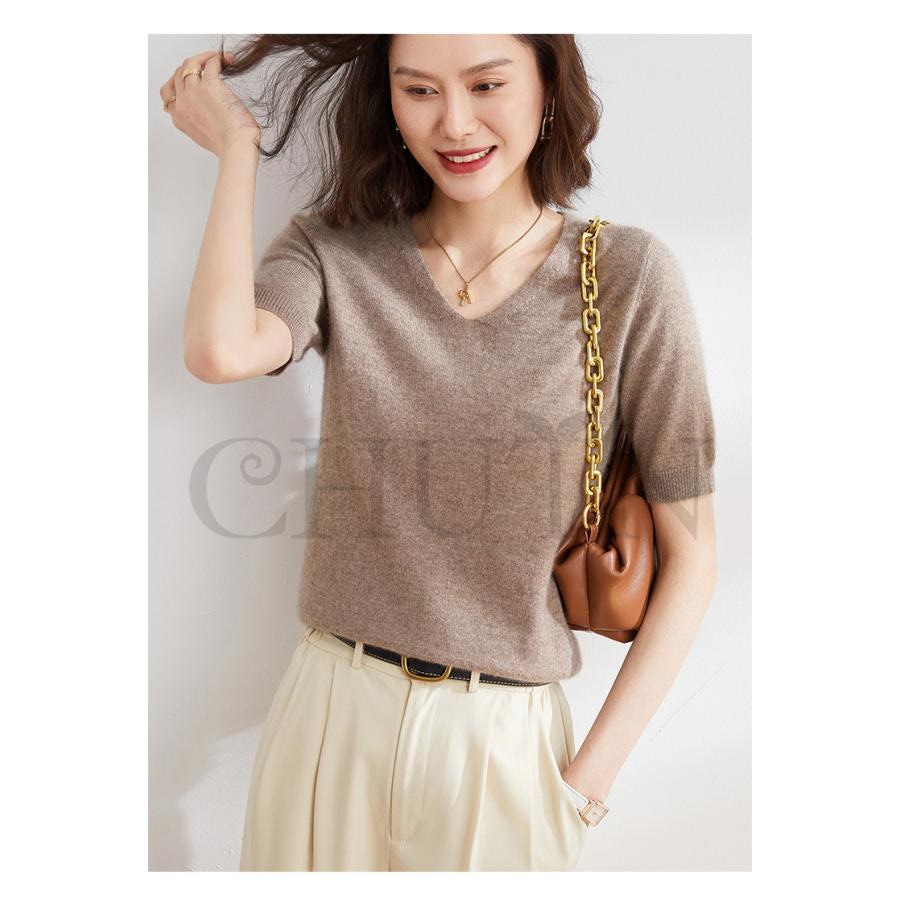 サマーニット セーター レディース vネック 五分袖ニットトップス プルオーバー ゆったり 着痩せtシャツ 韓国風通勤大人30代40代ロイヤルブルー夏秋
