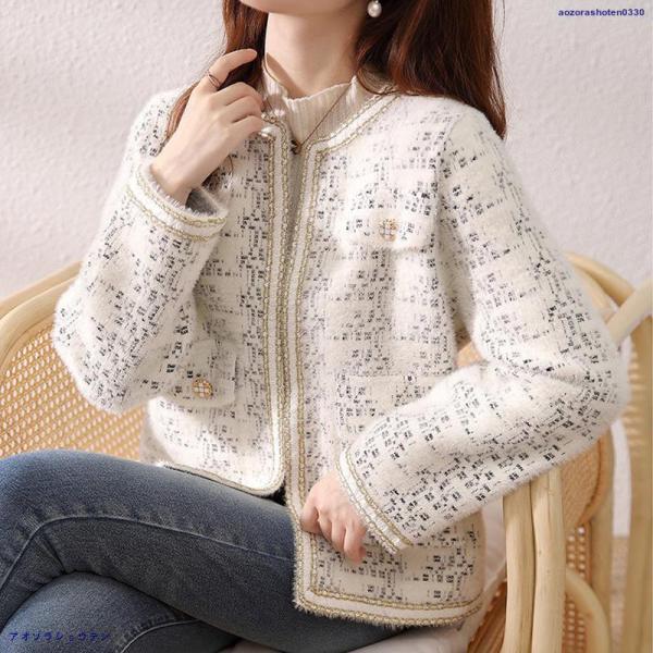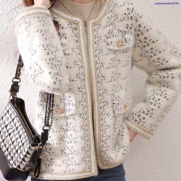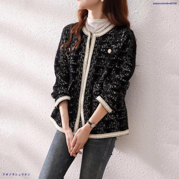 人気沸騰 ブレザージャケット レディース ノーカラージャケット フォーマル ツイード 長袖 ニット アウター 韓国風 春 秋 冬 オフィス カジュアル 入学式 卒園式 卒業式