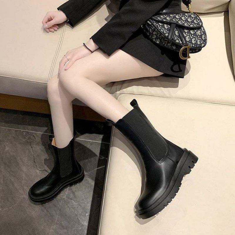 万能流行感 サイドゴアロングブーツ レディース ブーツ サイドゴア 厚底 ロング丈 おしゃれ PU シンプル 美脚 おしゃれ 歩きやすい 履きやすい