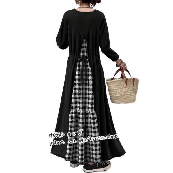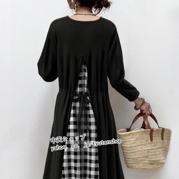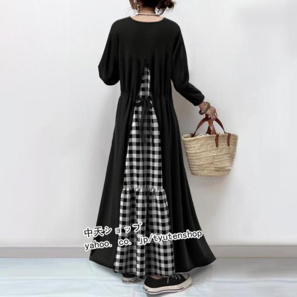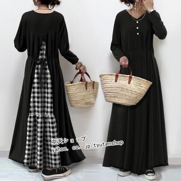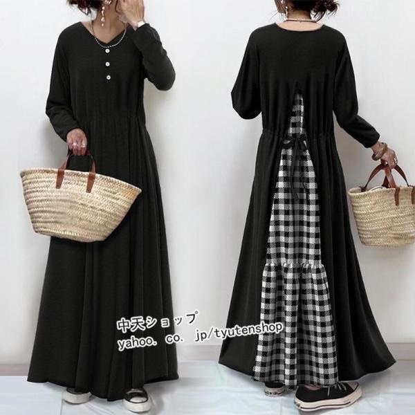 人気沸騰 春ドッキングワンピース長袖 レディース 夏秋 ロングワンピース マキシワンピース 秋服 カジュアルワンピース チェック柄 vネック 大人 気質