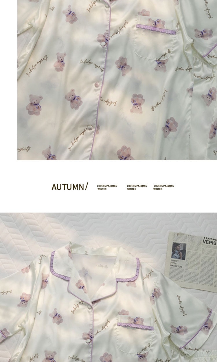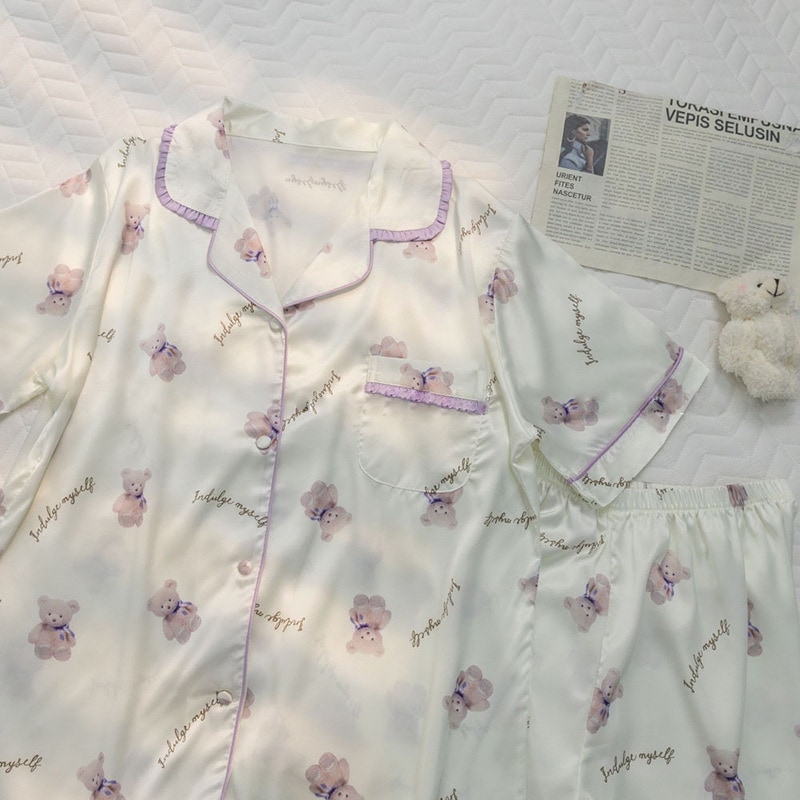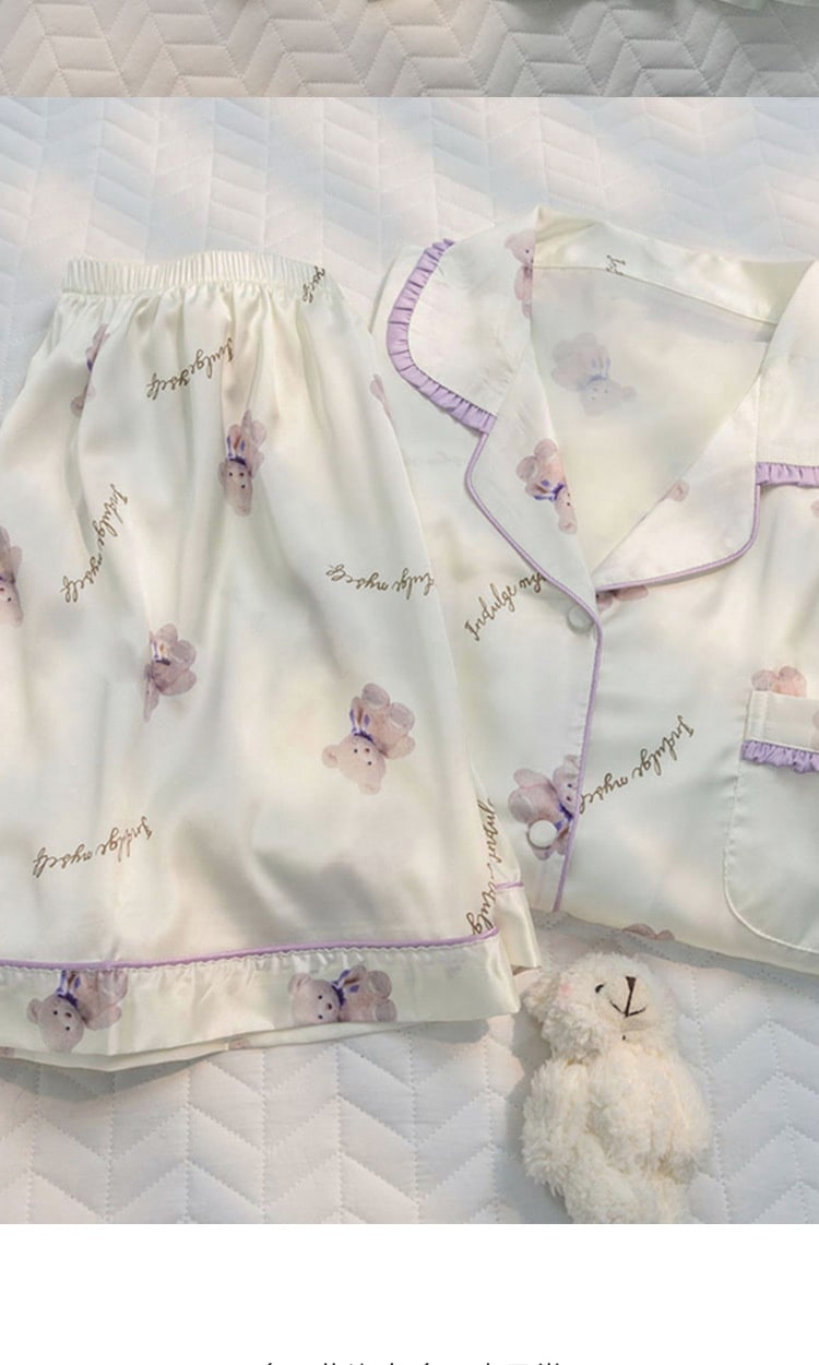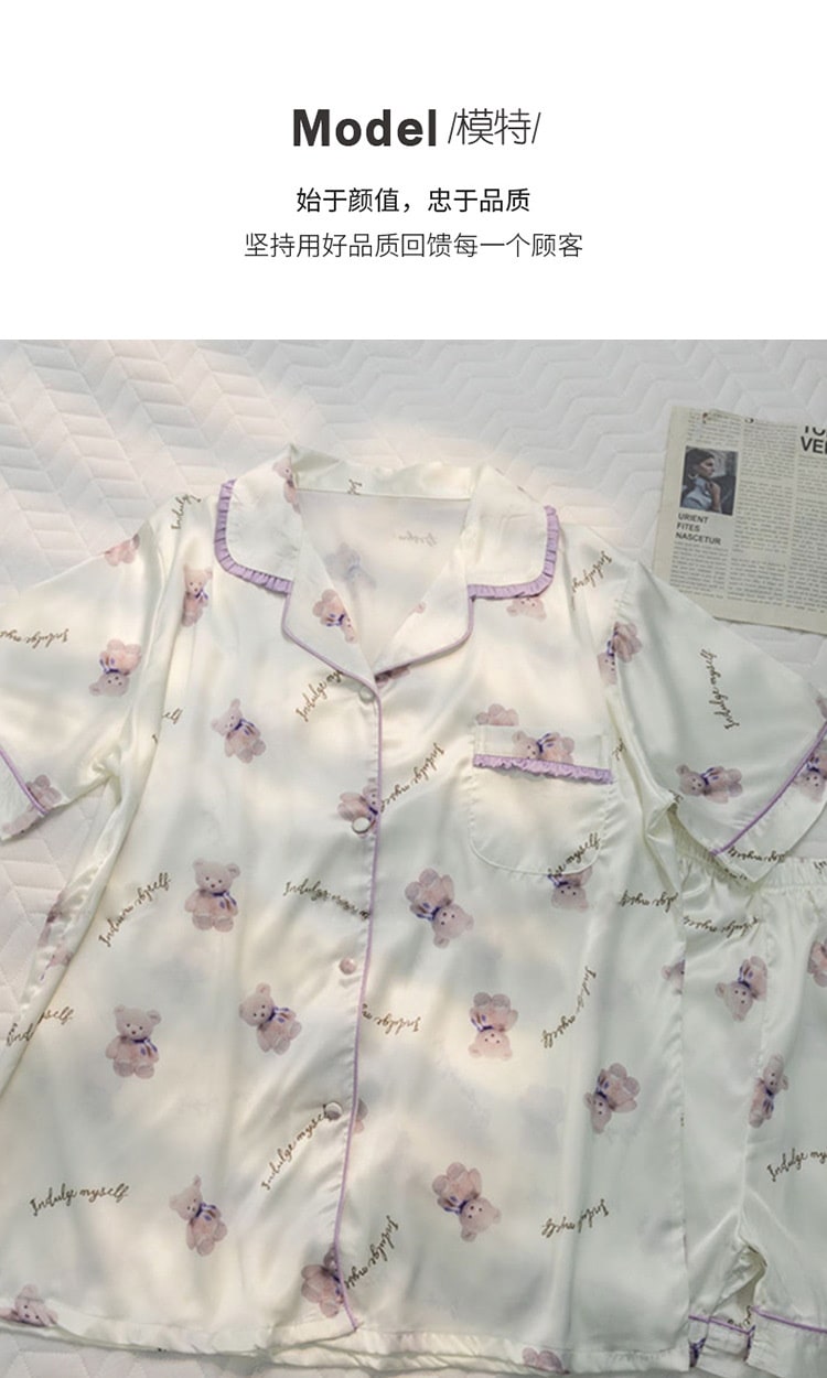 ウェアパジャマ 韓国大人気 カーディガンパジャマレディース新型ins風かわいい小熊半袖半ズボン外着部屋着セット 母の日 パジャマ