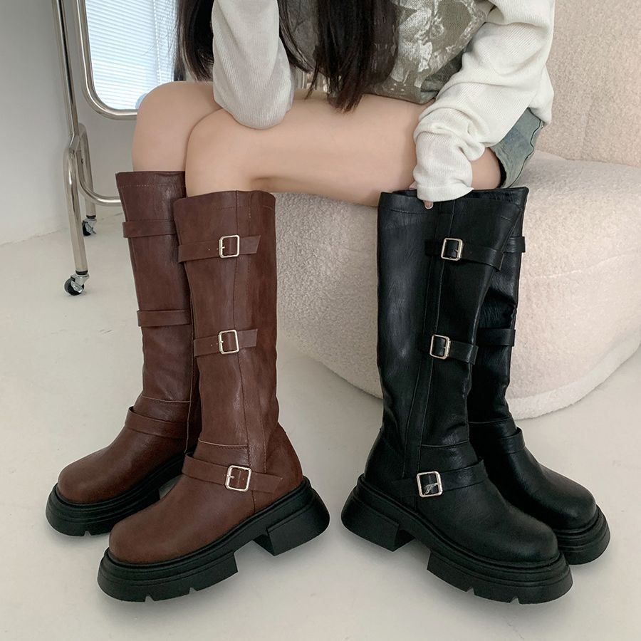 フランス 厚底 復古 長靴 女 2023新型 ひざを曲げない やせて見える 太いかかと ウエスタンナイトブーツ ブーティー