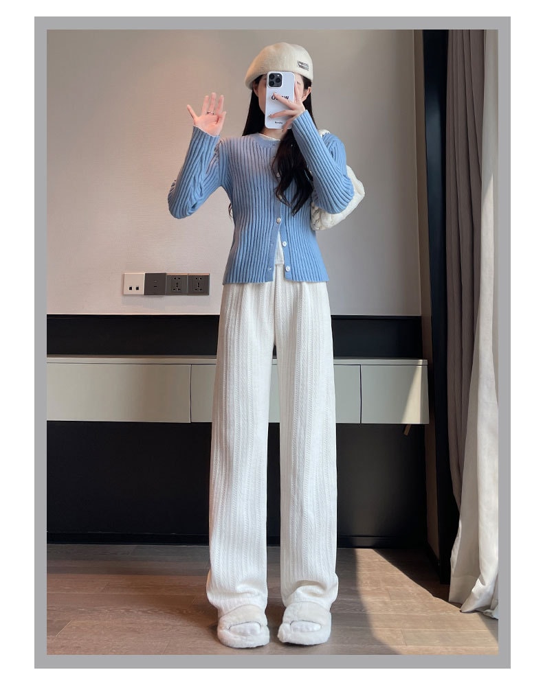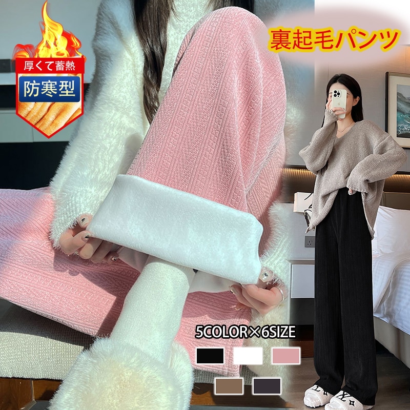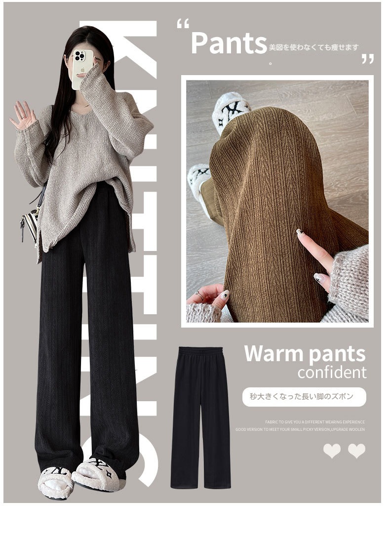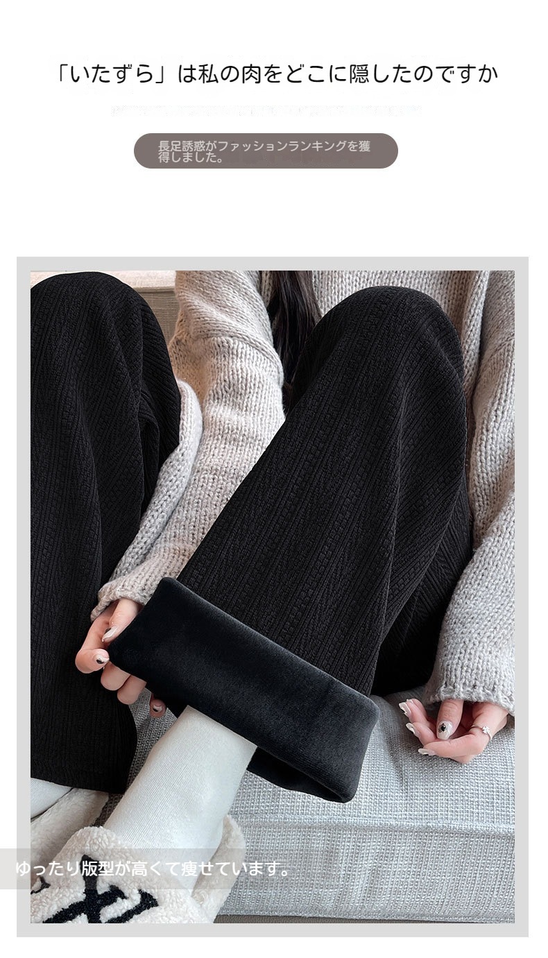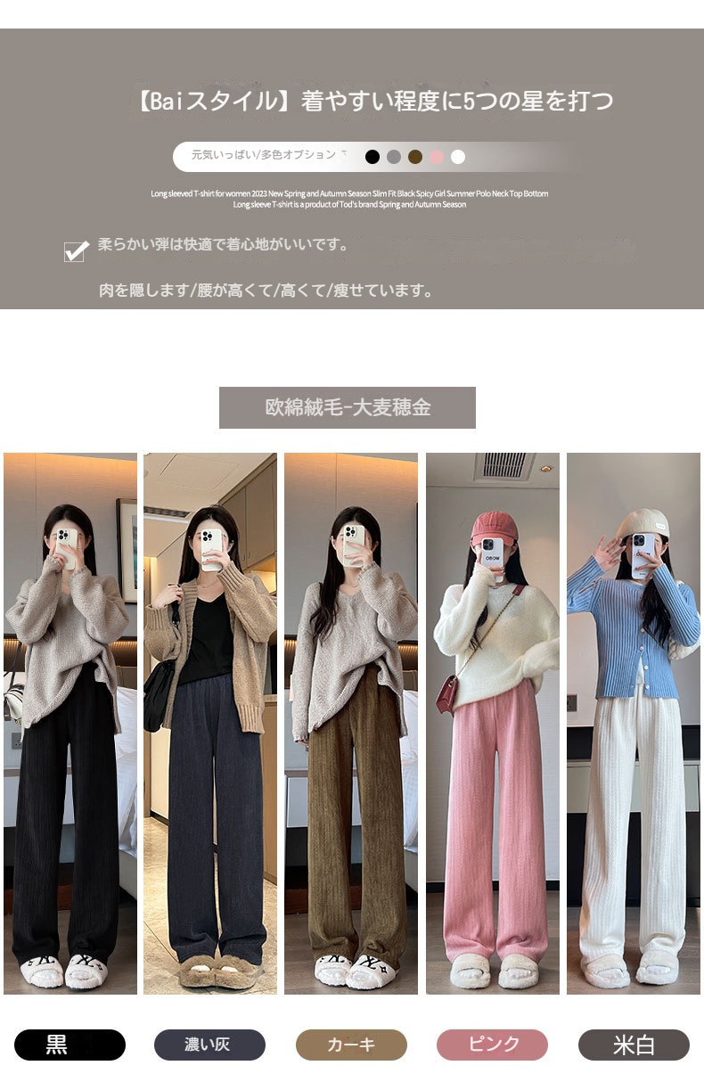 裏起毛パンツ麦穂雪尼爾広脚ズボン女子秋冬高腰直筒加毛厚ニットカジュアルズボンコーデュロイズボン ロングパンツ