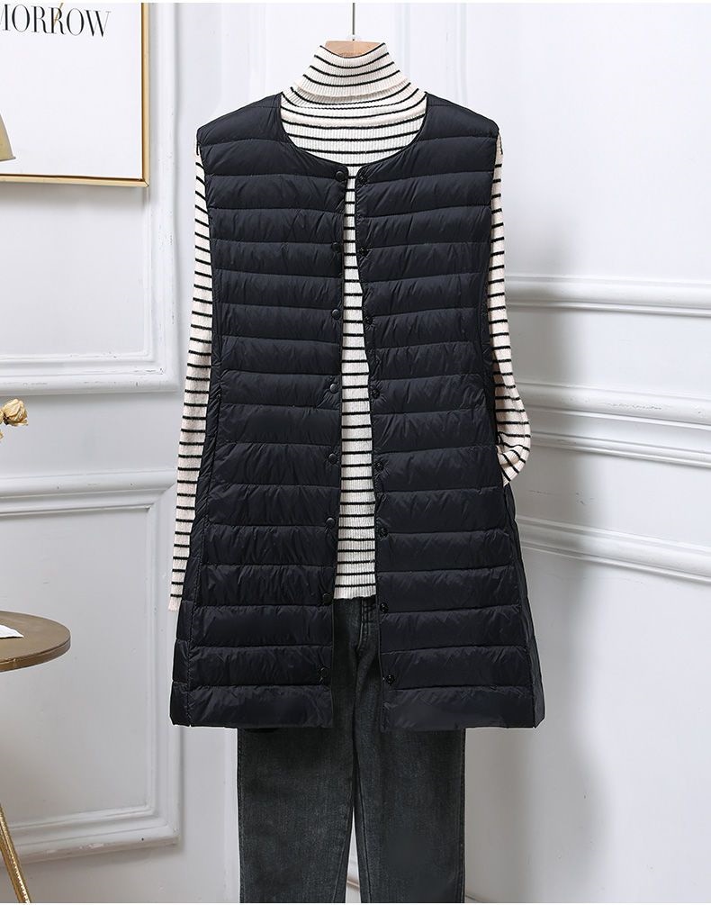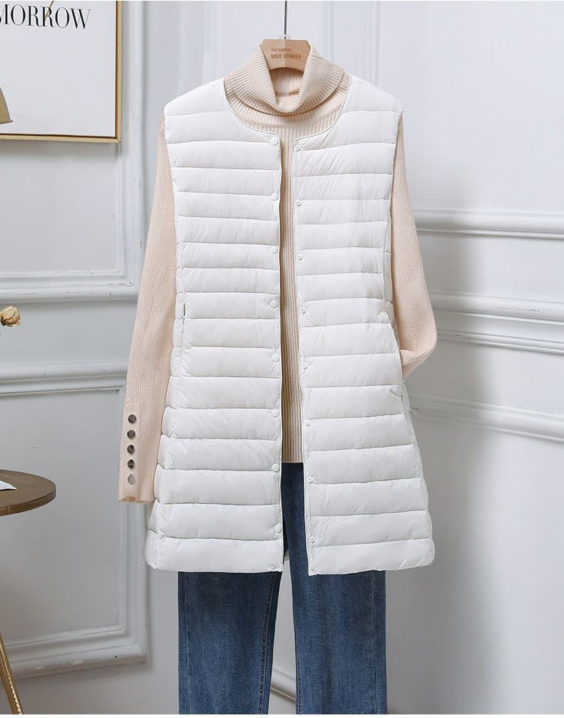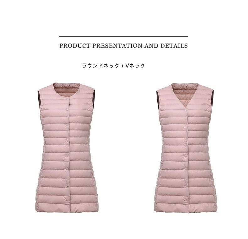 レデイース服アウターベストダウンベスト2024秋新品軽量薄型ラウンドネックVネックミドル丈5カラー通勤通学L-3XL ベスト