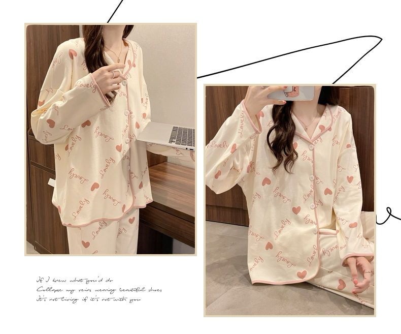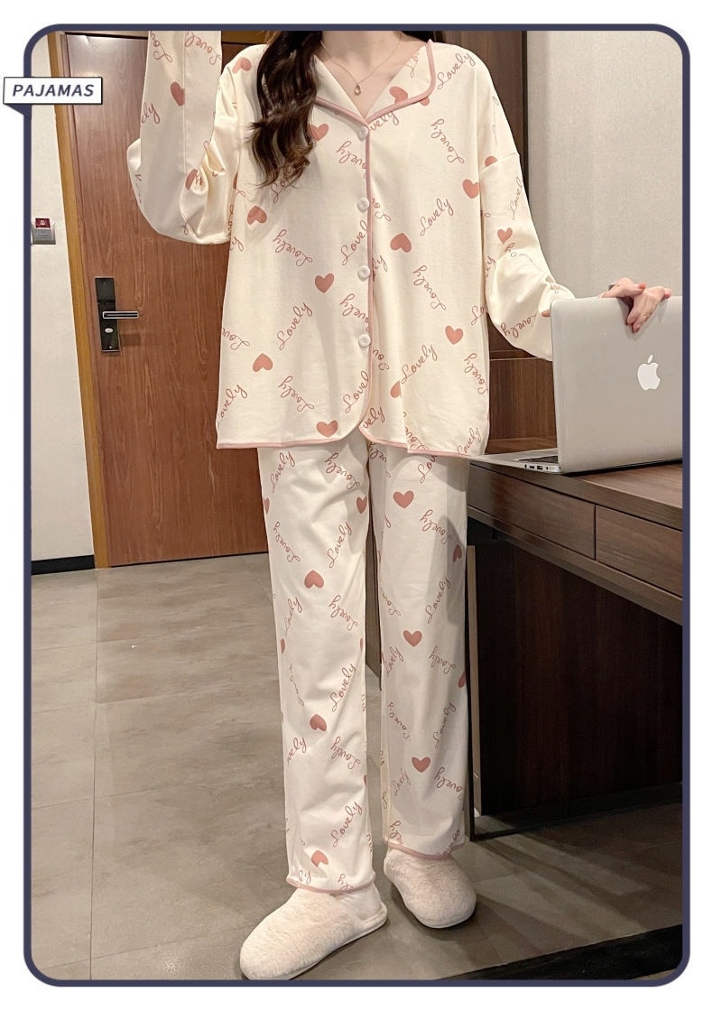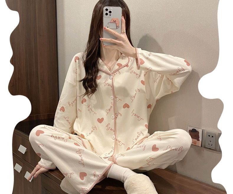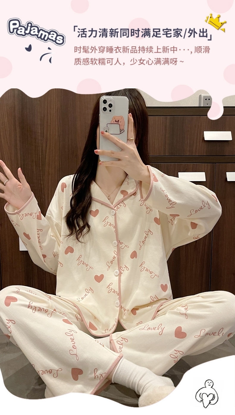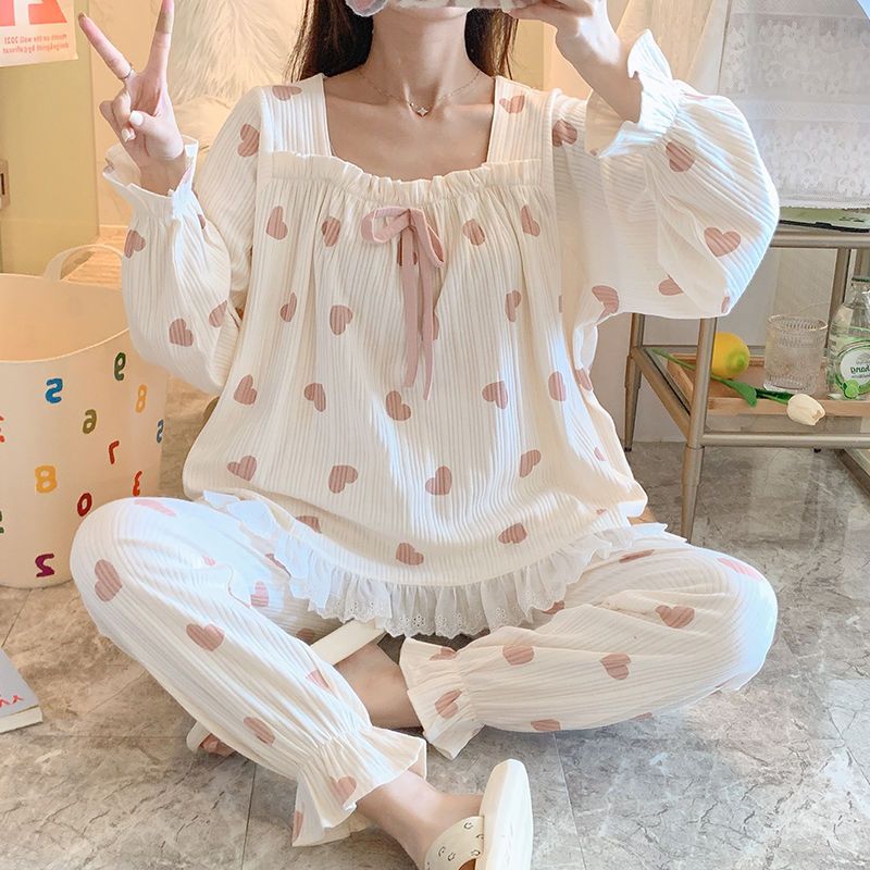 韓国版パジャマレディース春秋冬長袖長ズボンセット夏の日の部屋着かわいいハート桃楽ちんルームウェアルームウェア ルームウェア