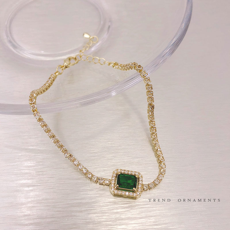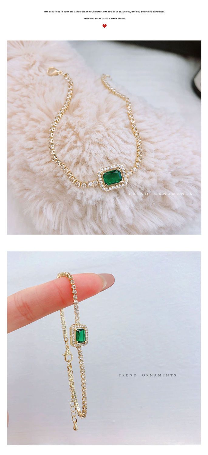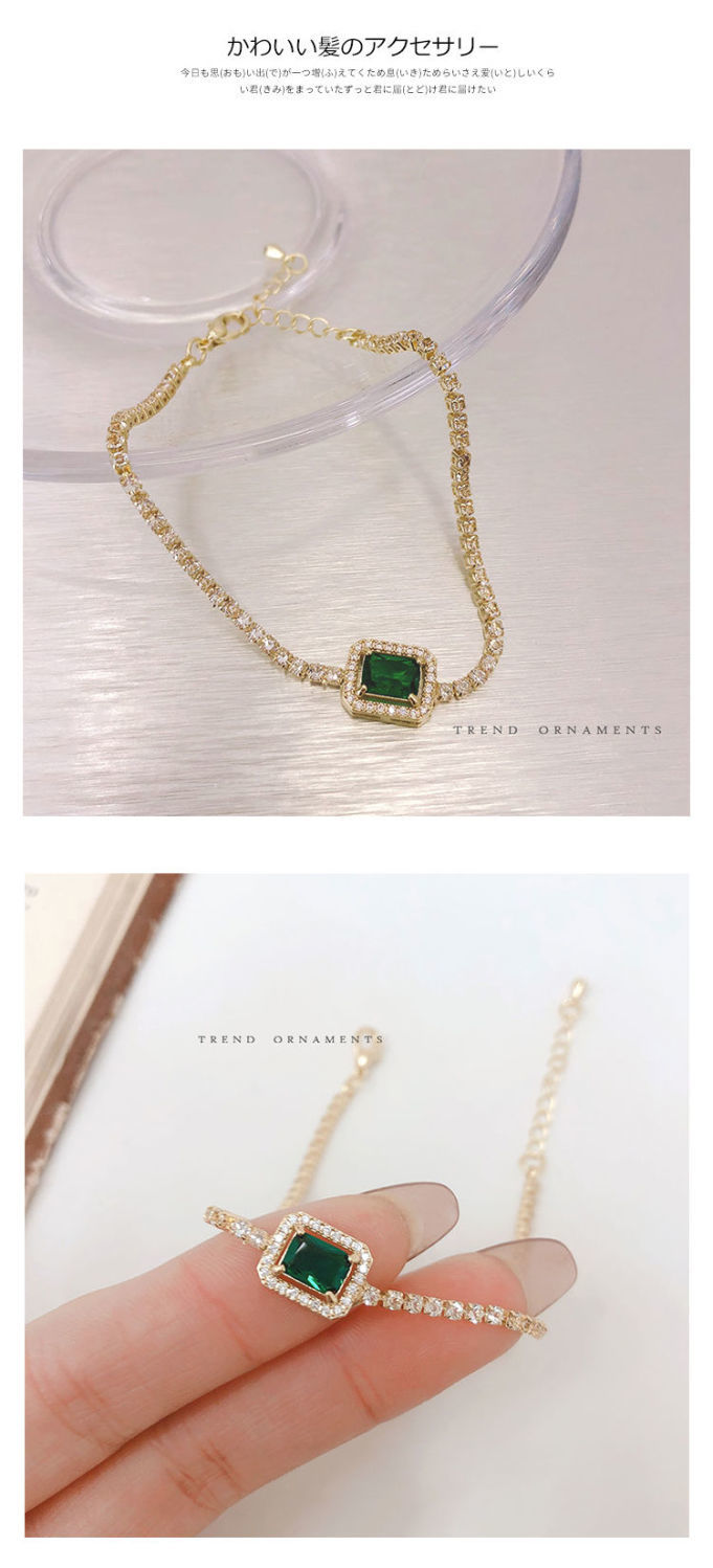 バングル フルダイヤモンドグリーンジルコニアブレスレット女性韓国のハンドジュエリー ブレスレット