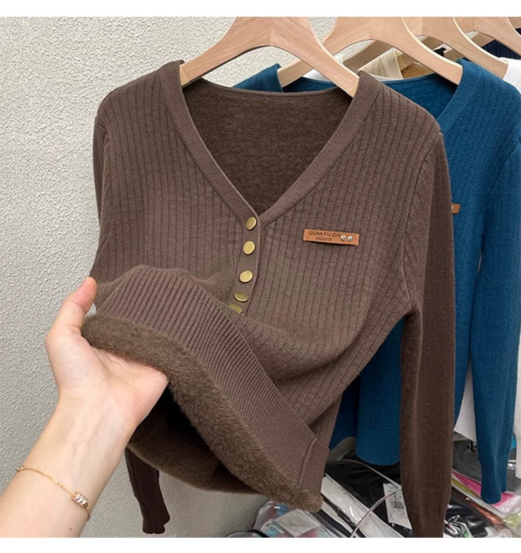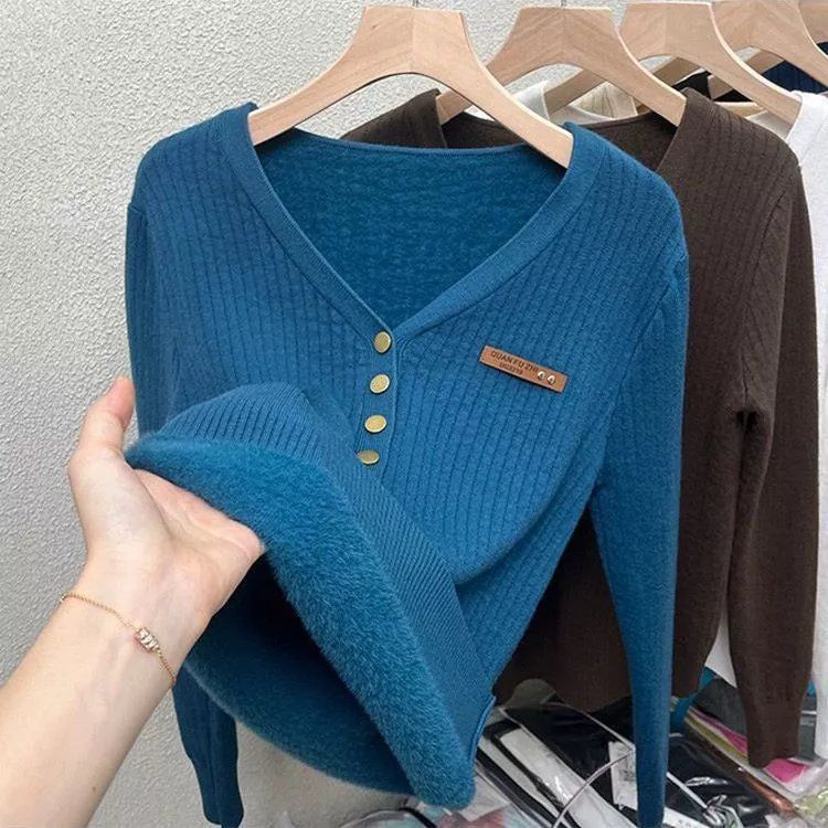人気なリプニット 裹起毛 暖かいニットインナー Vネック 着痩せ 大きいサイズ セーター レディース 韓国ファッション ベーシックニットトップス カシミヤタッチ ニットセーター