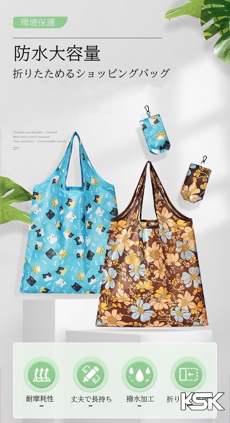 エコバッグ フック付きECOBAG 激安4+1 6+2折りたたみコンパクト撥水加工エコバッグ軽量大容量水洗可能 繰り返し 折りたたみ可能なキャリーケース 丈夫で長持ちするショッピングバッグ