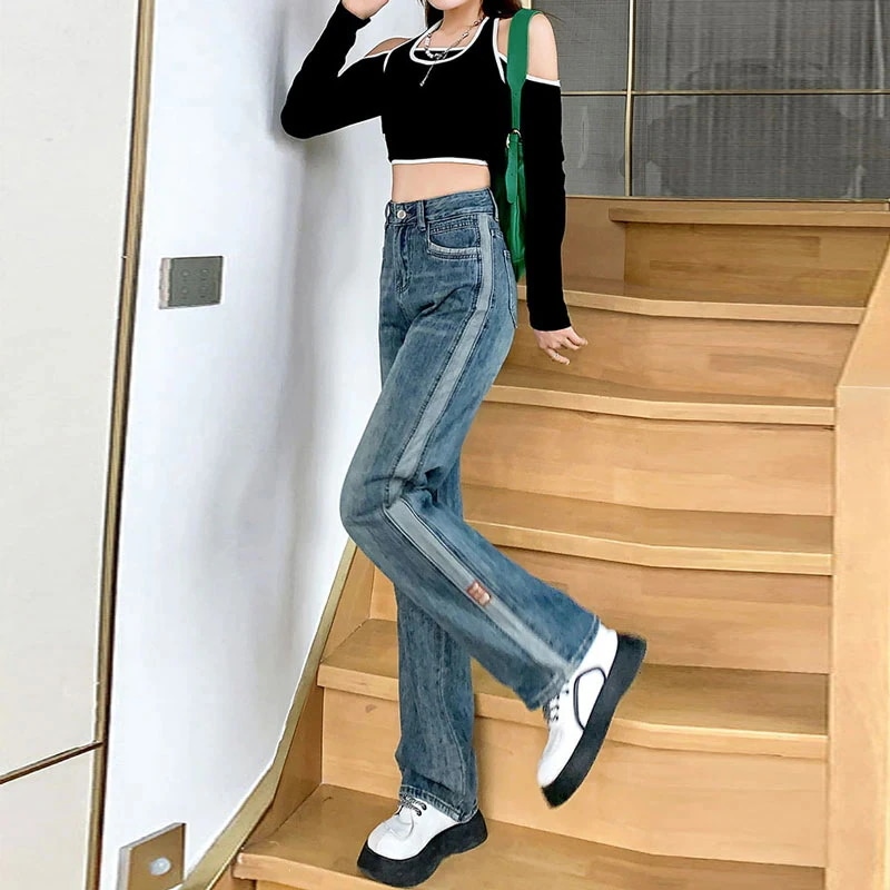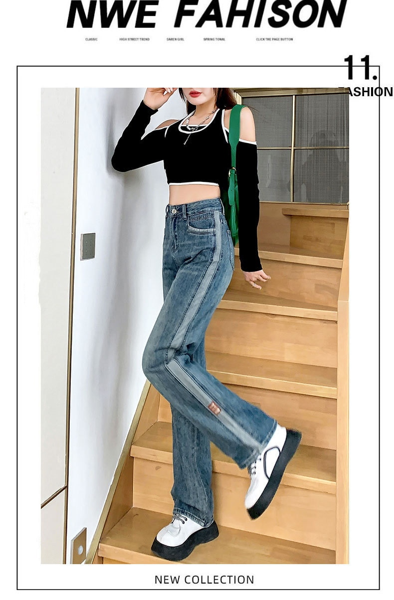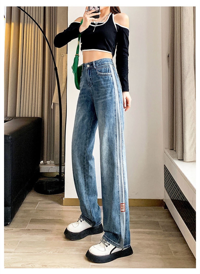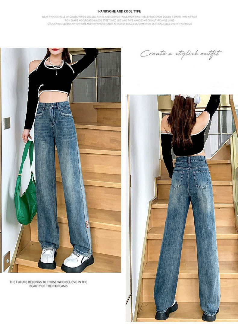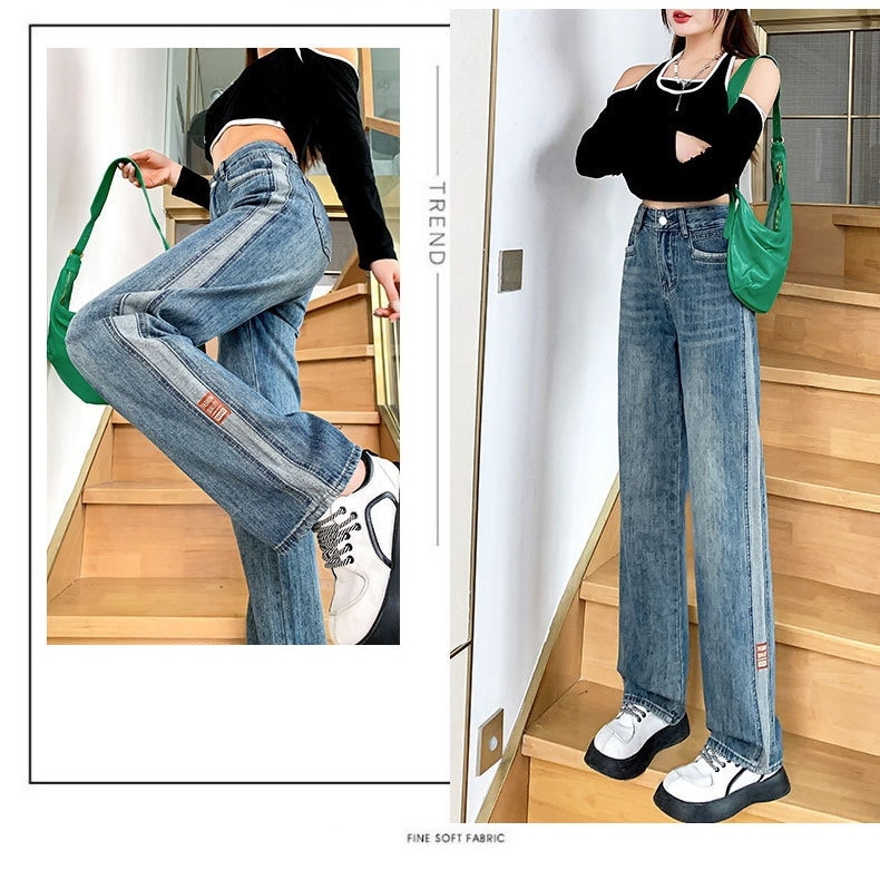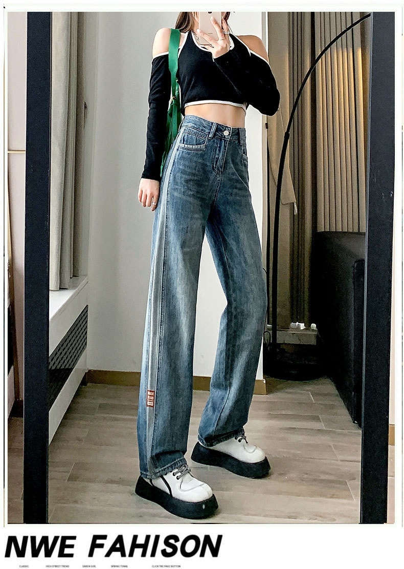 韓国 ワイドパンツ レディース 夏 ハイウェスト ストレートパンツ 着痩せ モ ップパンツ デニム ジーンズ