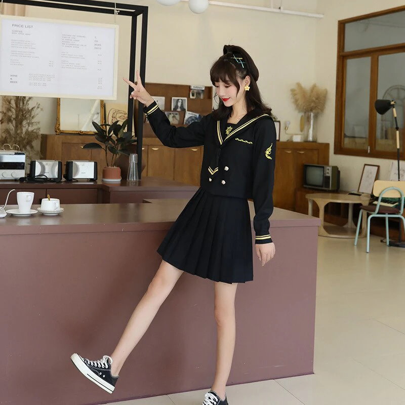 韓国 14色 学生服 女子制服 靴下付4点セットセーラー服 長袖 半袖 JK制服 春秋冬服 高校 スカート