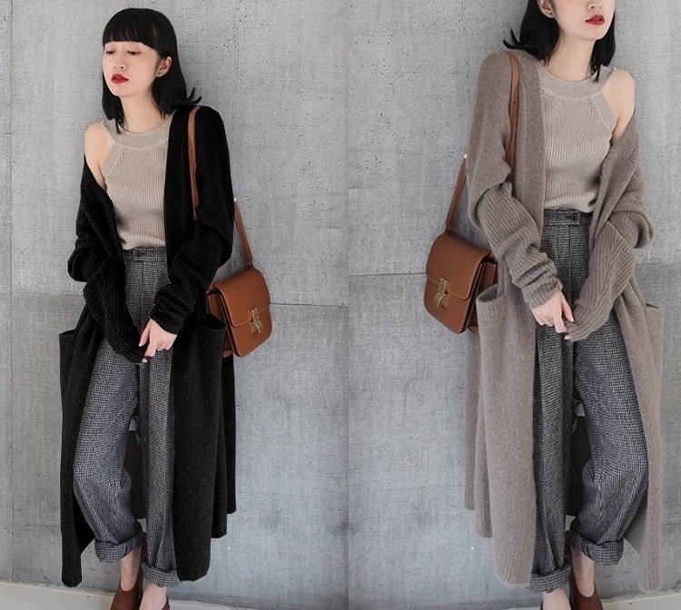 新作 シンプル 百掛け ニットカーディガン トップス アウター 長袖 ロングカーディガン 着痩せ セーター カーディガン