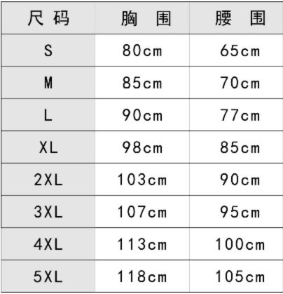 尺码: S M L XL 2XL 3XL 4XL 5XL