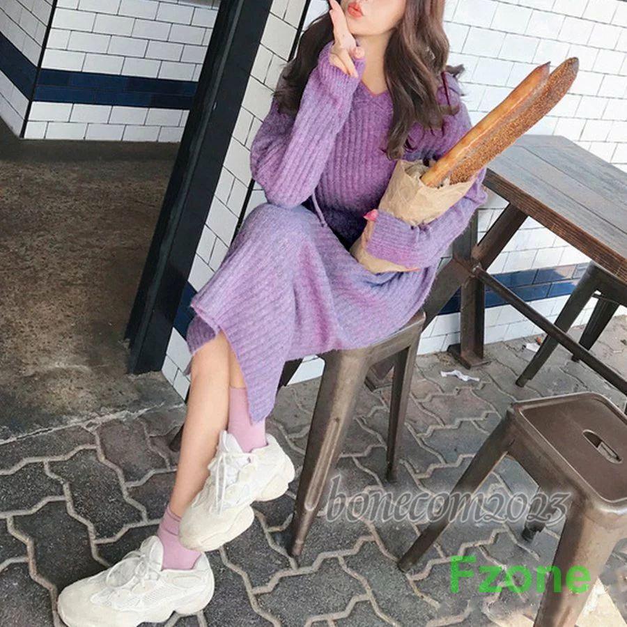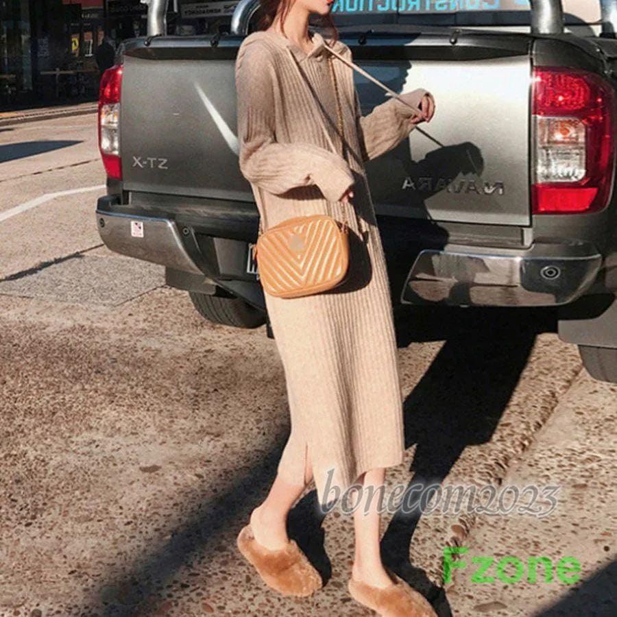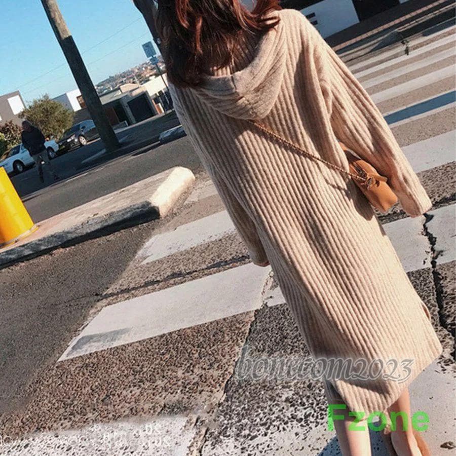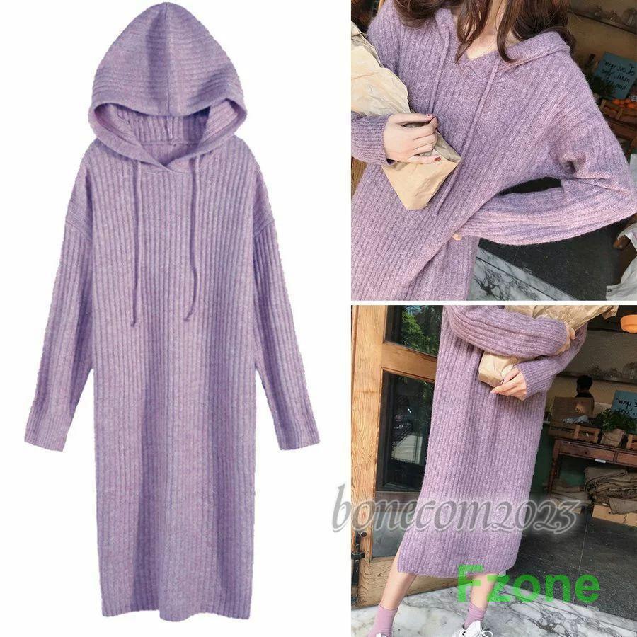 ニットワンピース レディース 秋冬 ワンピース ミモレ丈 パーカー ロングワンピ ス トレッチ ミディアム 長袖 フレア キレイめ 可愛い ゆったり カジュアル 通