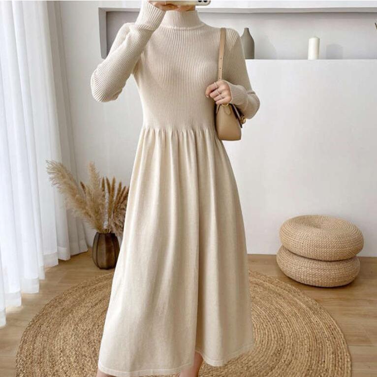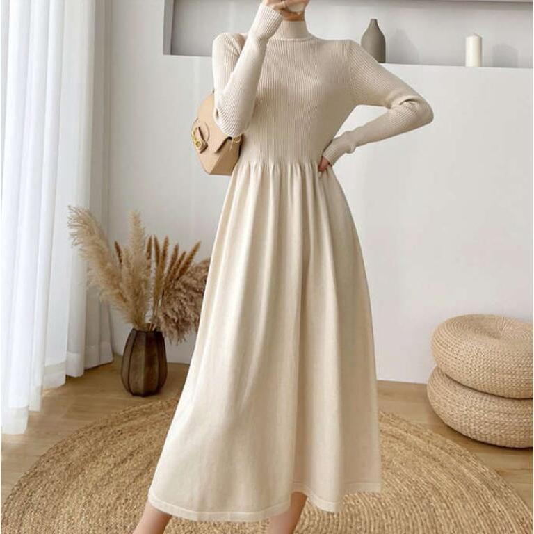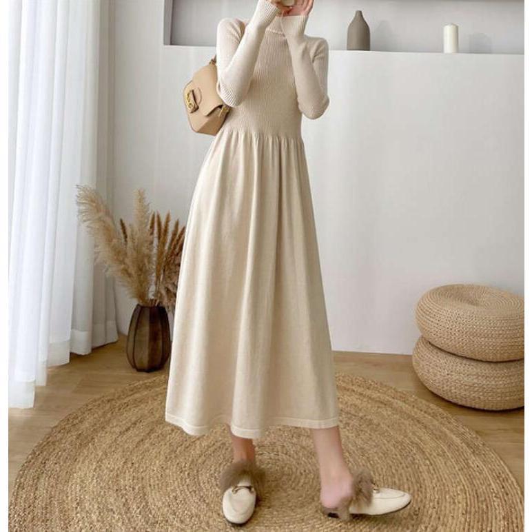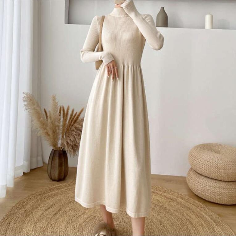 ニットワンピース レディース ワンピース ニット ワンピ リブ リブニット 秋冬 きれいめ ニットワンピ 大人 長袖 ロング ハイネック ニットワンピ