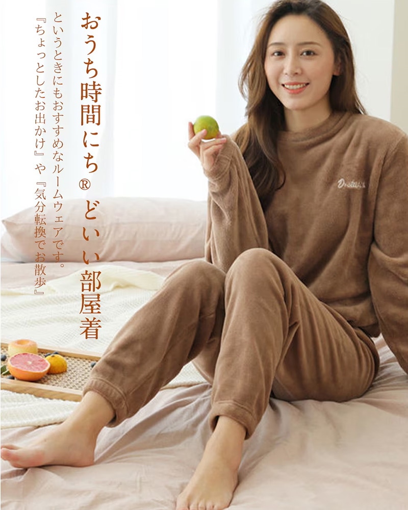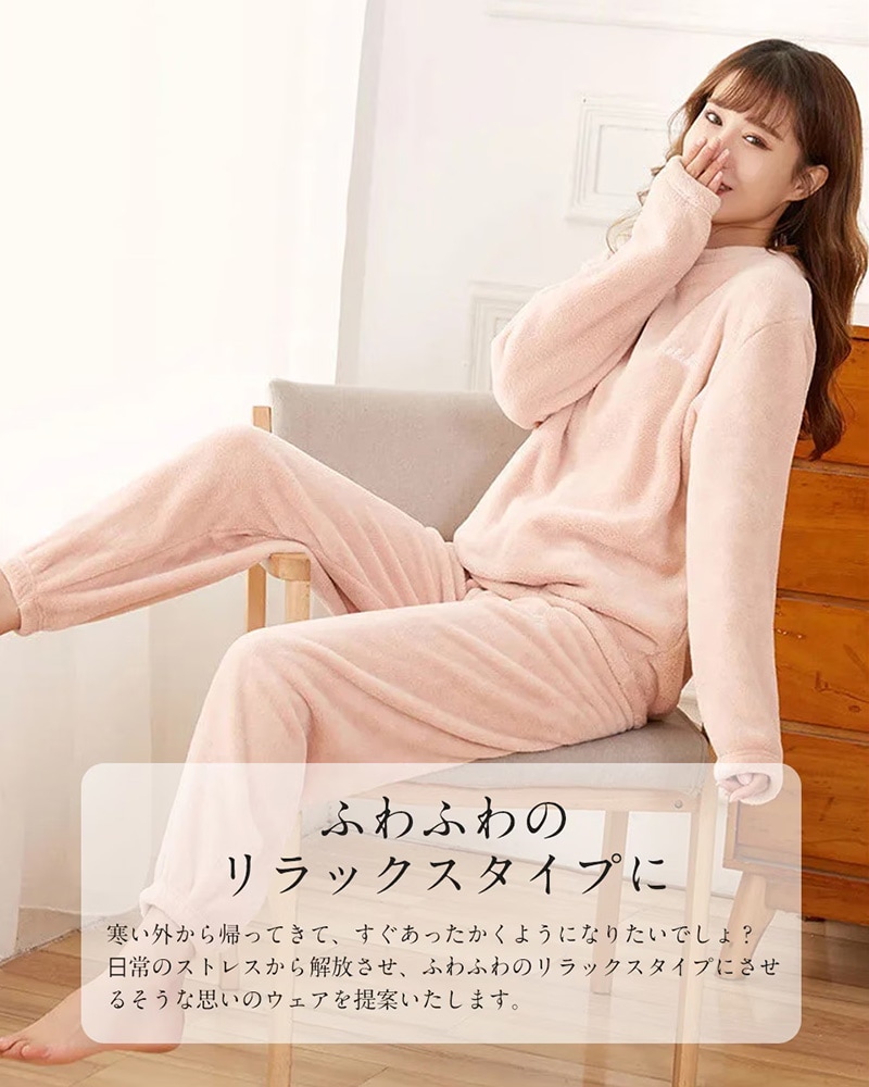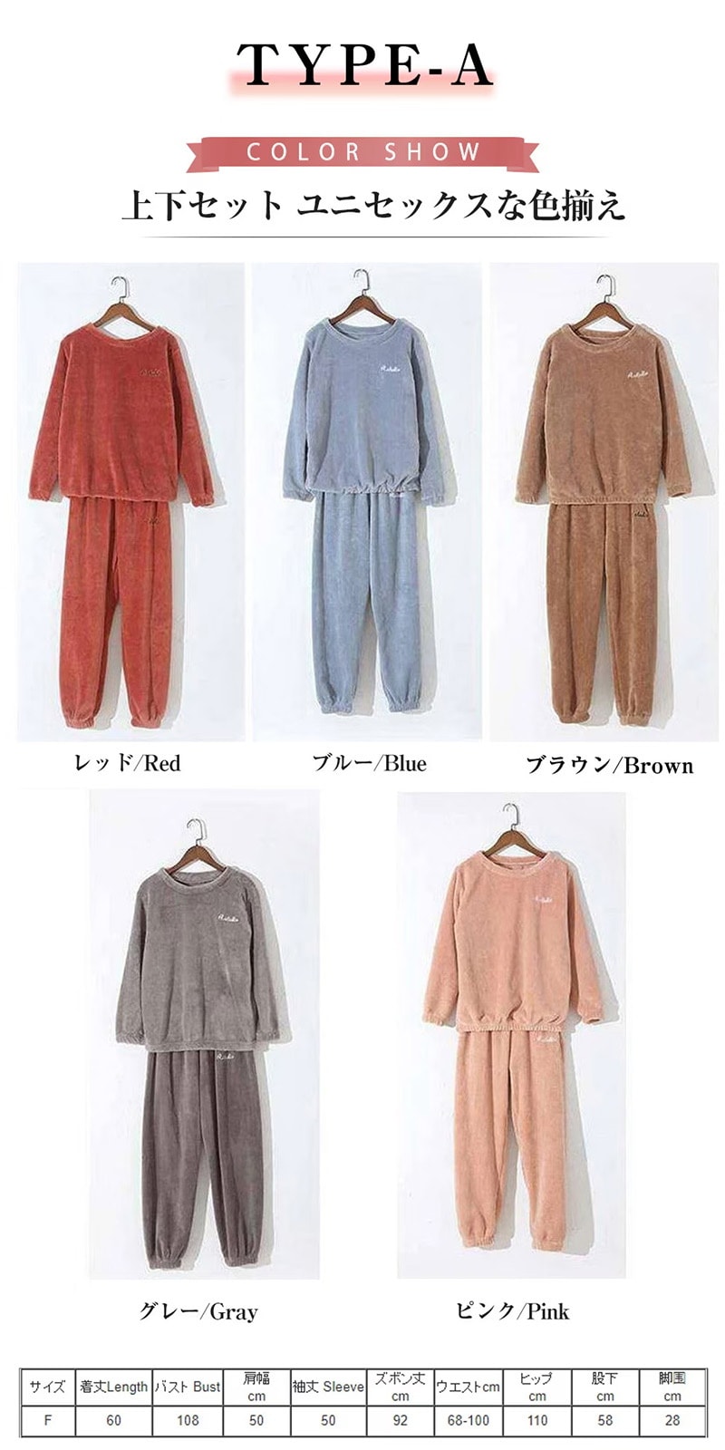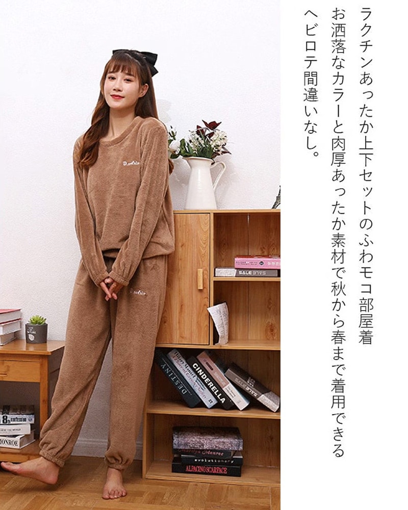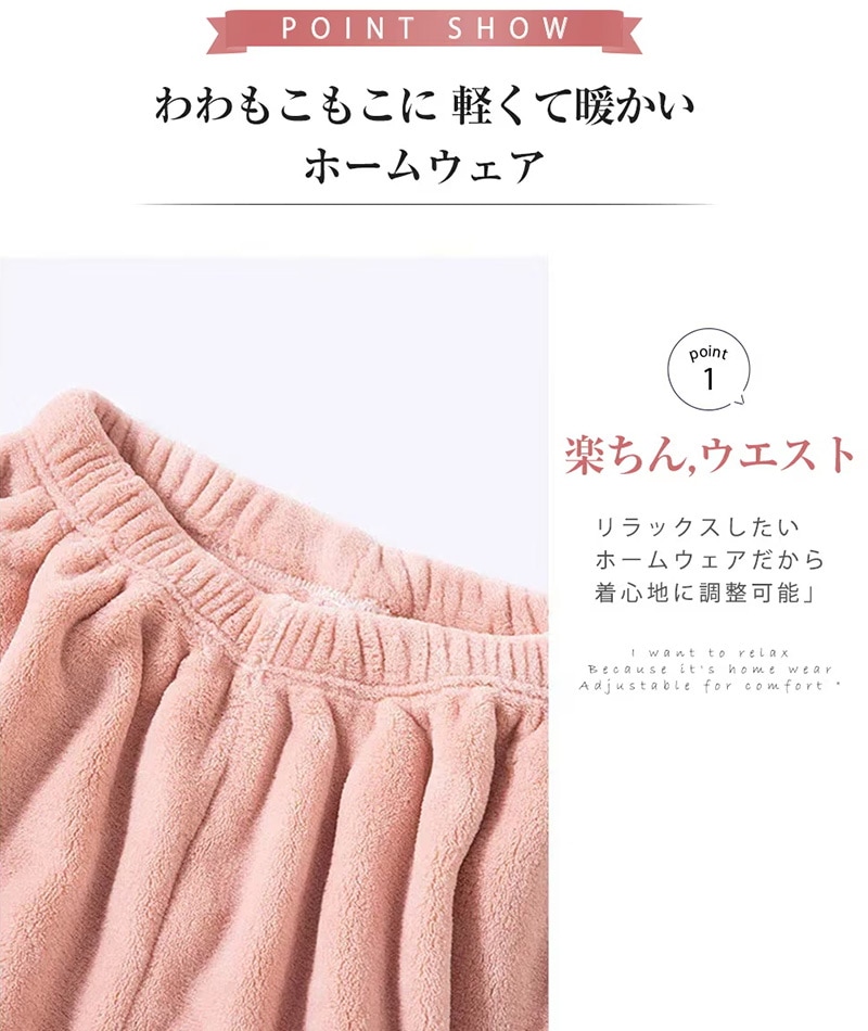 2タイプ 彼女に着てほしいルームウェア第1位 ふわもこ 超保温モテルームウェア 裏起毛 超保温ふんわり肌触りスウェットルームウェア ズボン 上下セット