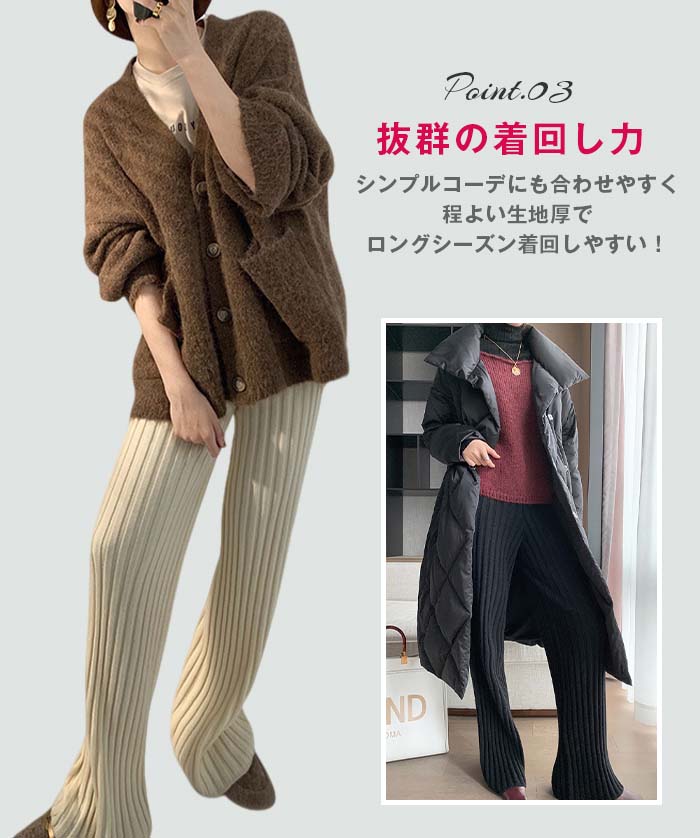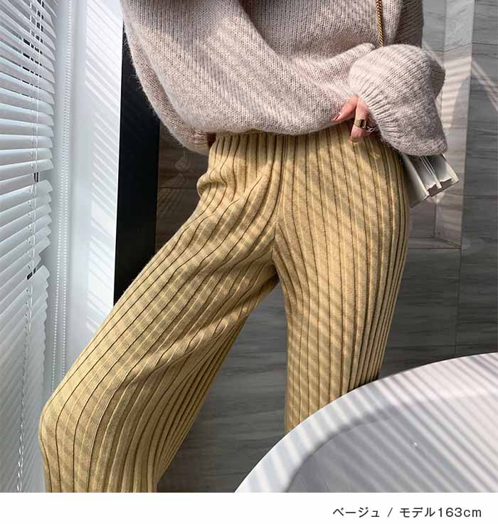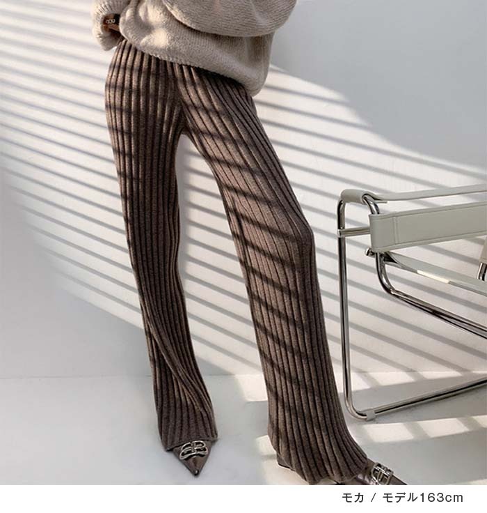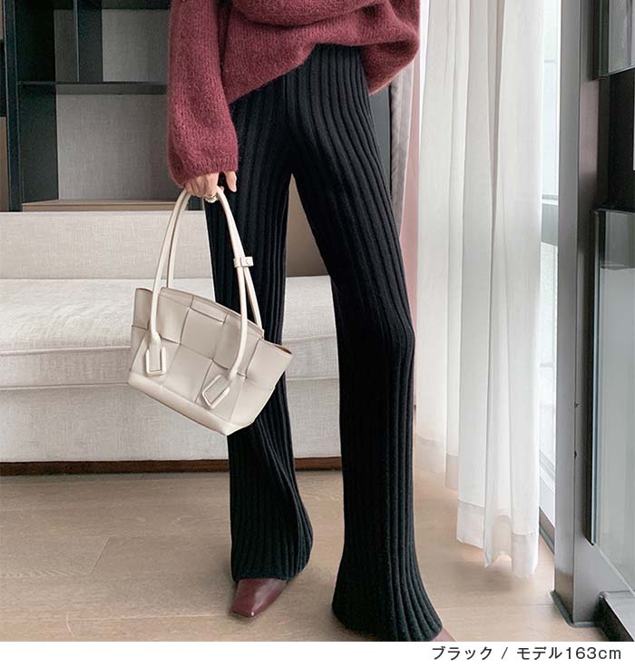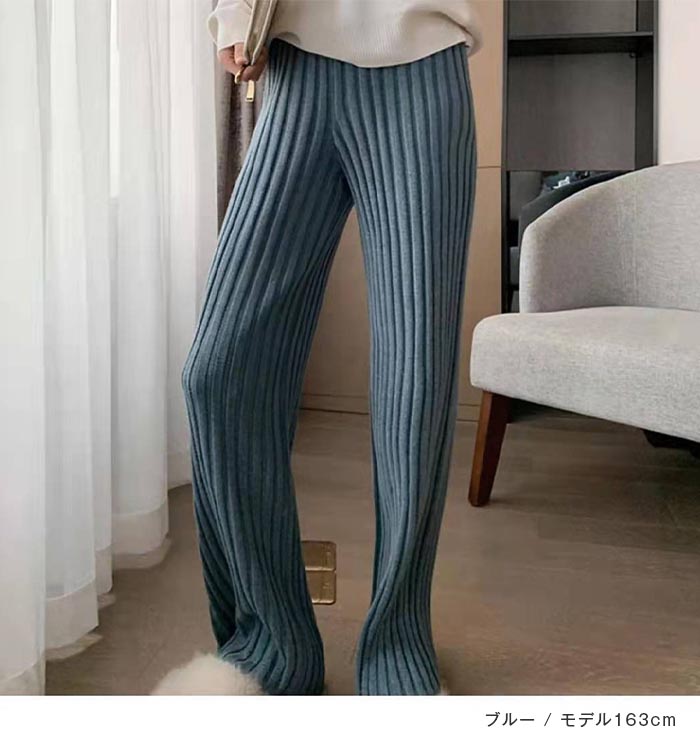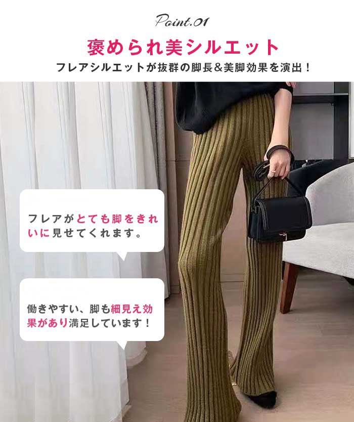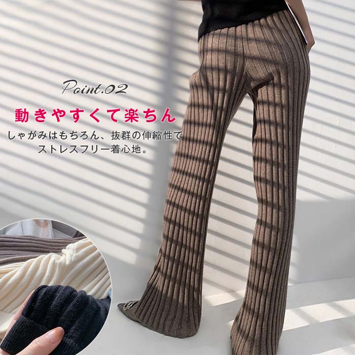 ニットパンツレディースフレアパンツボトムスパンツリブニットロングきれいめワイドパンツフレアパンツ無地ゆったりワンマイルウェアニットフレアパンツイージーパンツフレアおしゃれ大人カジュアル